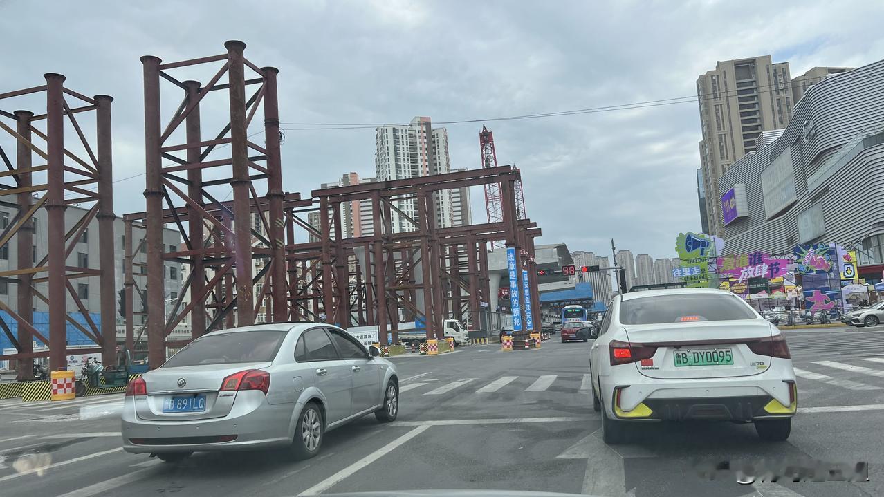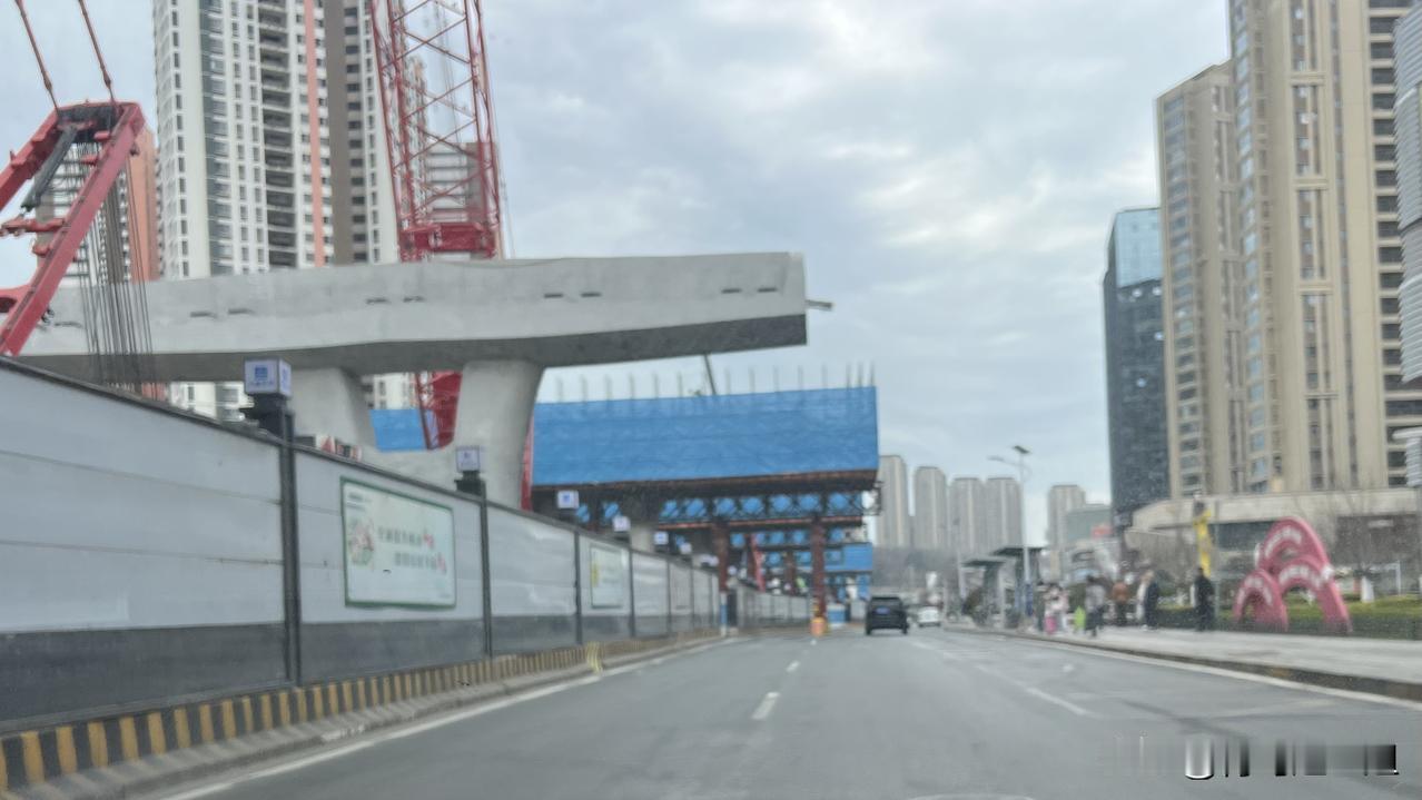 黑龙江路段,新建双向六车道高架桥梁己搭建框架,跨越合肥路,蚌埠路,劲松五路等路口,同步扩宽地面铺路,大约有5.6公里的路程。