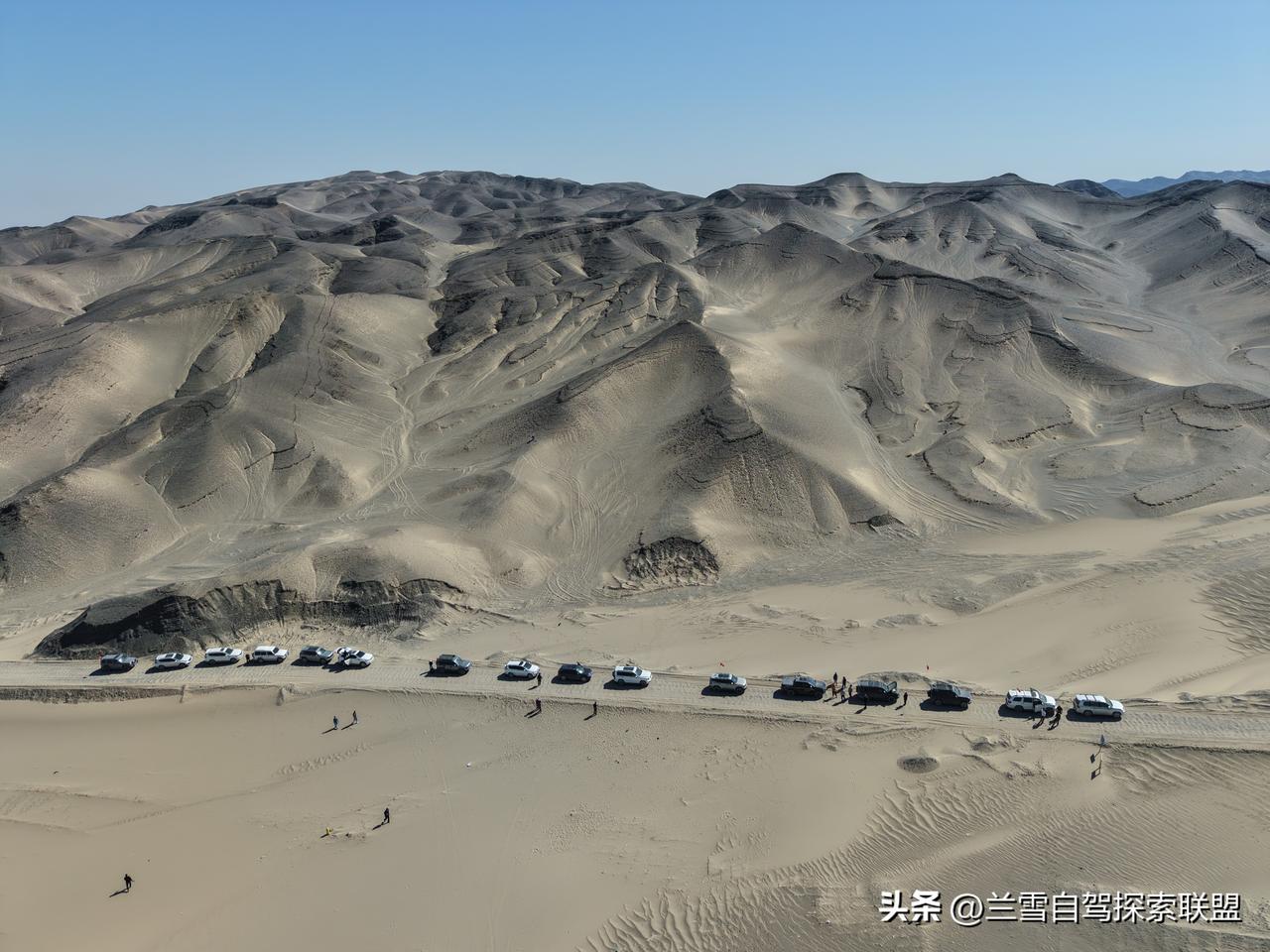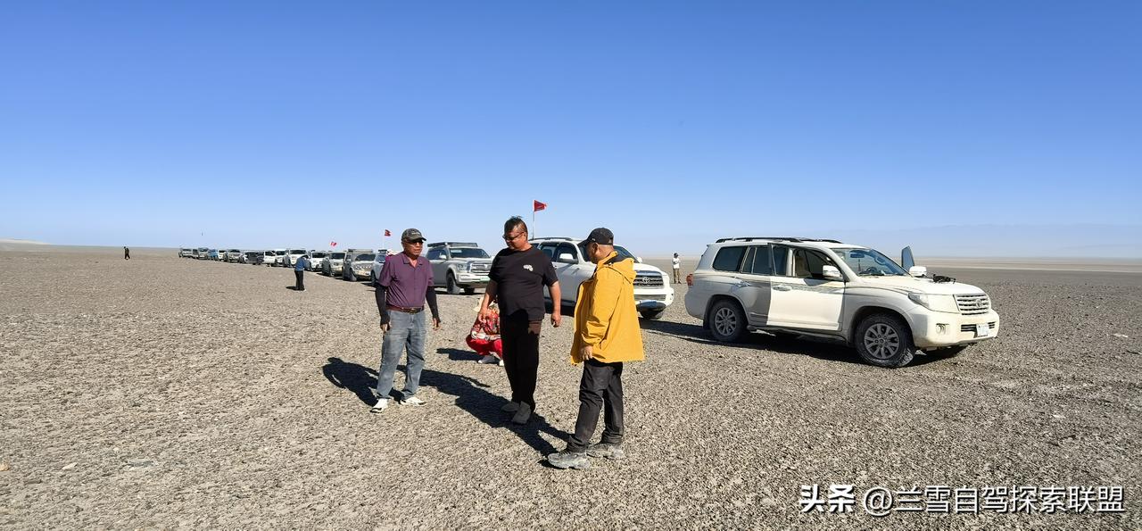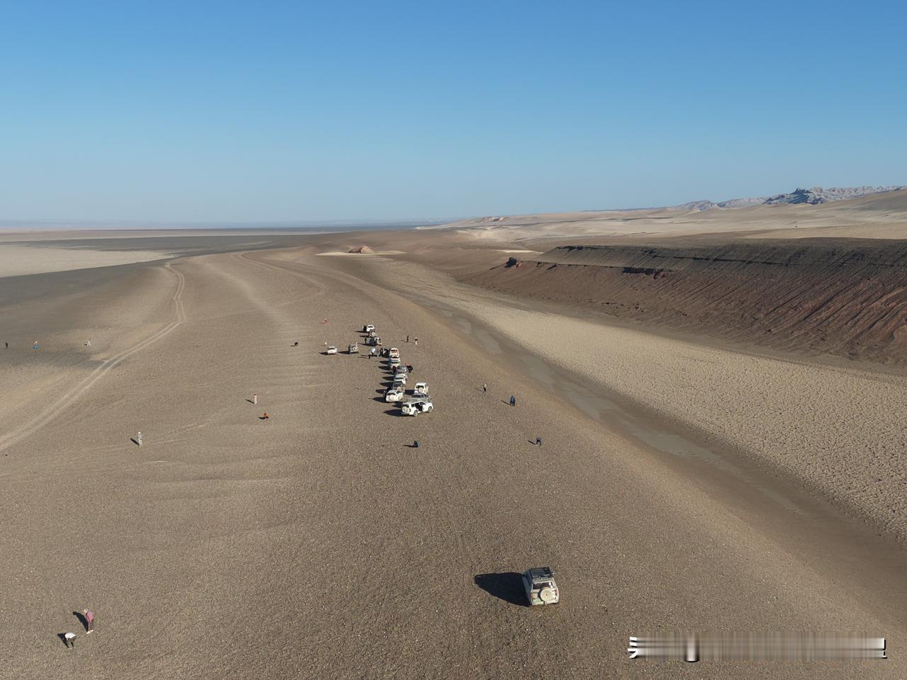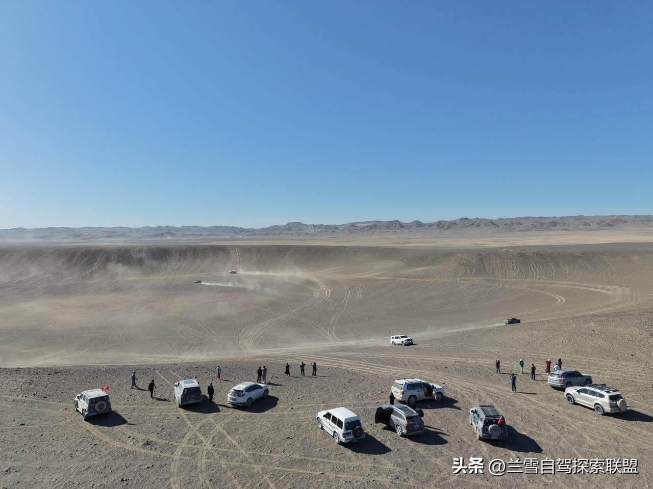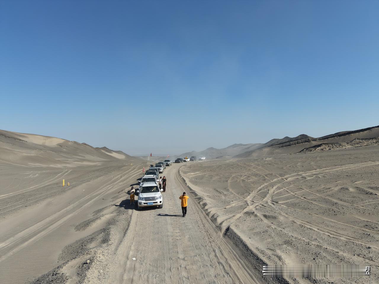 清明带队自驾穿越3日游,今天是清明假日的第三天,下午还要穿越牧道,时间很紧张,早晨10点通知车队继续出发,为了赶时间,领队选择了最简单的一条路线,基本在平坦的沙漠和戈壁滩中穿行,速度保持在70码,右侧的海市蜃楼清晰可见,左侧就是一望无际的戈壁滩,每个车飞驰而过都是长长的尾巴慢慢消散在空中。