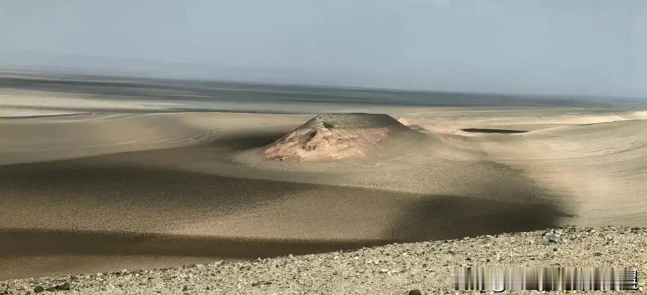 这里的沙海,远看是海,近看就是沙滩,沙海旁全部是美丽的石头,真的是一个神奇的地方,整个沙海只是底下有一点点潮湿,基本没有水,站到山顶看到的感觉就是和海一样美,这里就是一望无际延伸到天边,这里是中国海拔最低的地方,沙海底下还有两个小岛模样的红色山脉,特别红艳,就是在沙海的两边,在近处无法同时把两个小岛拍到一张照片里。