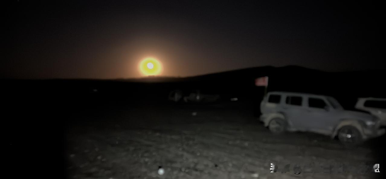 我先吃完开始组织大家唱歌跳舞,此时大约10点左右,估计是累了,有的友友已经睡下了,唱到11点放烟花和孔明灯,烟花升起的那一刻,瞬间照亮整个夜空,五彩的烟花四处散去。喝酒的男人们一直到2点多才散去,在12点朦胧的夜色中突然发现升起的月亮,晚上看就是红红的,从刚露头,一直看着它快速的升起来,到达半空夜色突然就亮了,能照射出浅浅的人影,半夜2点多,明亮的月光照亮了整个沙漠,不用打灯就能看好远,这样的月光只能在无人区看到。