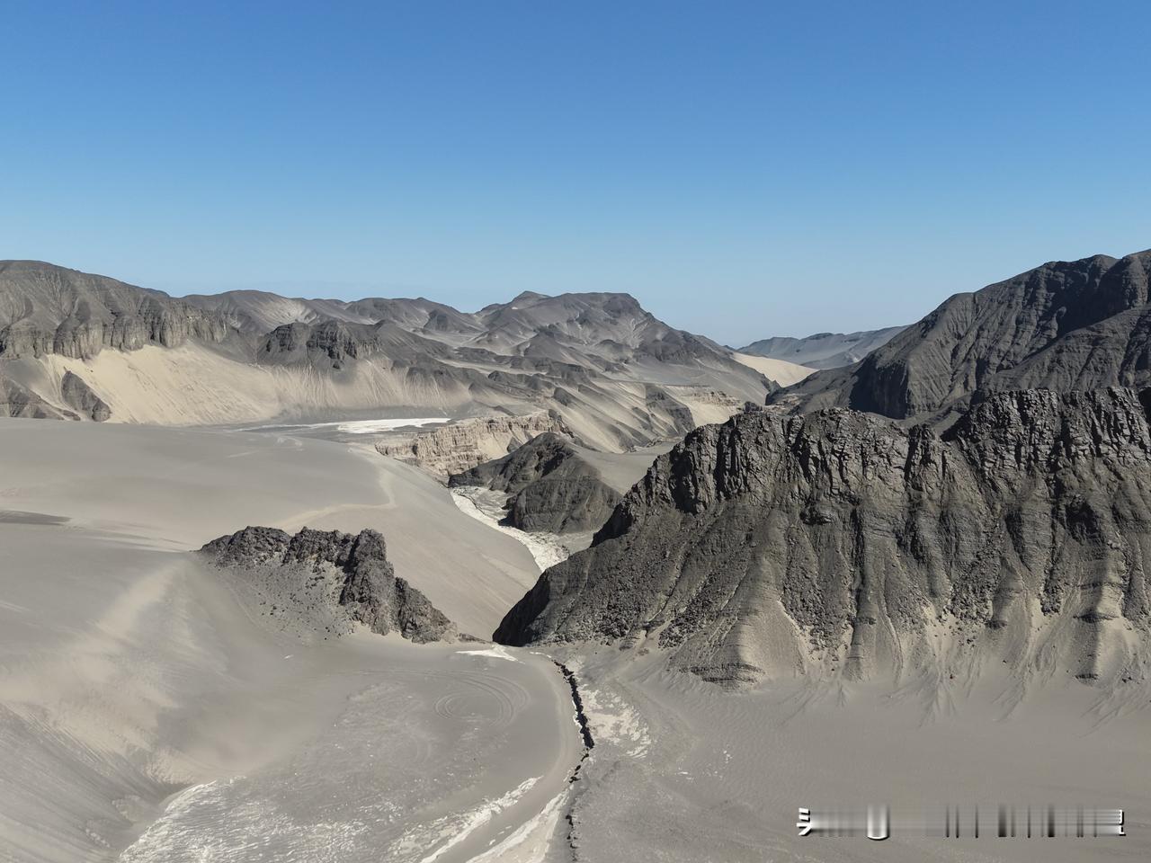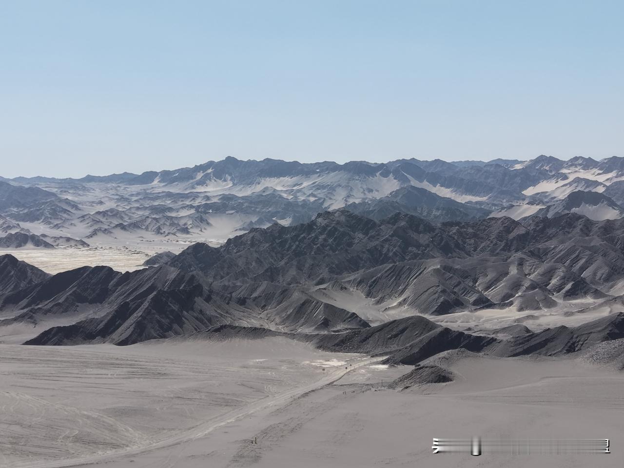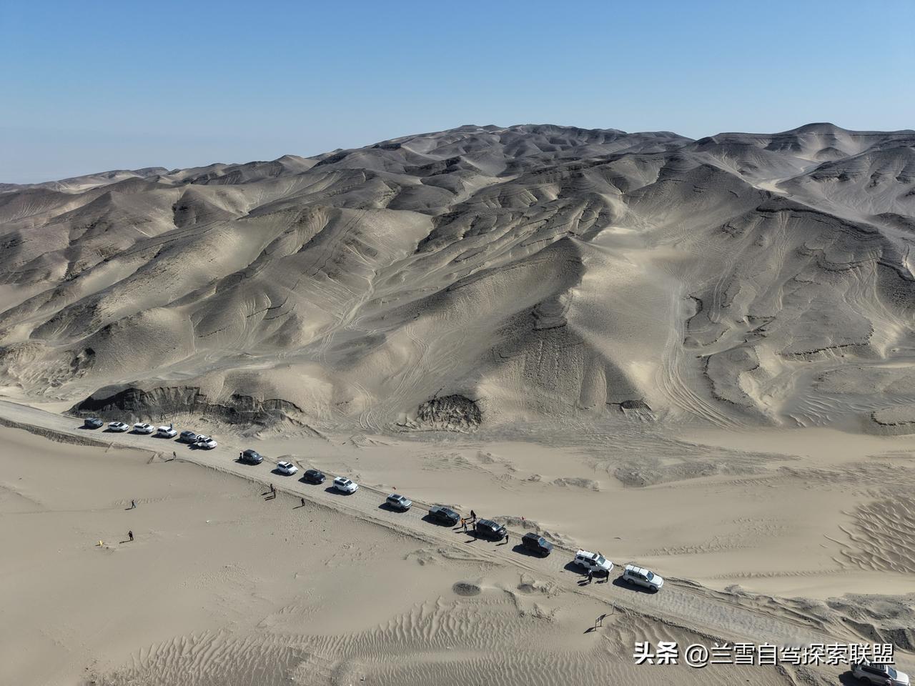 今天是假日的第三天,下午还要穿越牧道,时间很紧张,所以领队选择了最简单最快的一条路线,左侧是沙漠右侧是海市蜃楼,在沙海中航拍了车队,那样大漠孤烟的感觉拉满。
