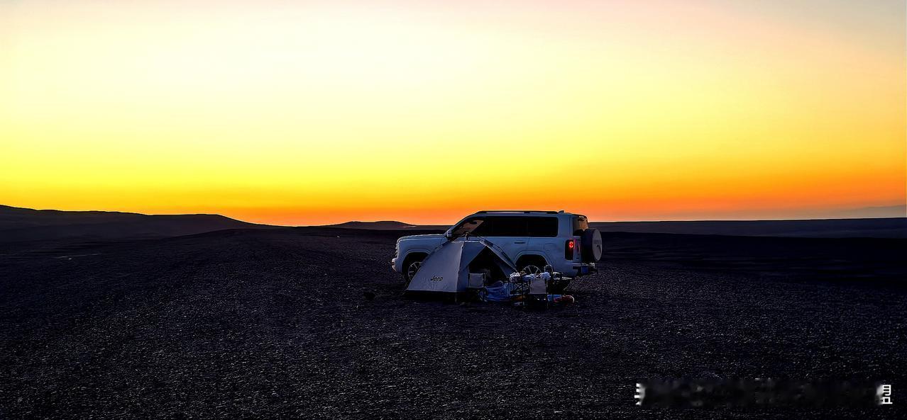 清明节带队3日自驾穿越的第二天,接上期说到,整整在荒野中跑了一天,到达沙海时,这里是一片沙漠,右侧是褐色山脉,正好夕阳西下,照的每个石头都是彩色的,考虑有带老人和孩子的,临时决定扎营这里,在夜里看到了火红色的月亮,半夜两点多夜晚和白昼一样,人的影子很清楚,上个厕所都要跑好远,12点多的北斗星正对头顶,有点微微的暖风,穿着短袖温度刚刚好。