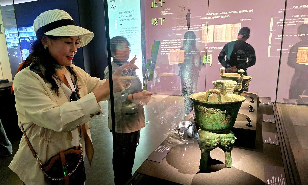 其一为何尊,作为西周早期盛酒器,尊底铸有122字铭文,“宅兹中国”是迄今所见“中国”一词最早的文字记载。该器物1963年出土于宝鸡市东北郊贾村,是博物院的核心瑰宝。