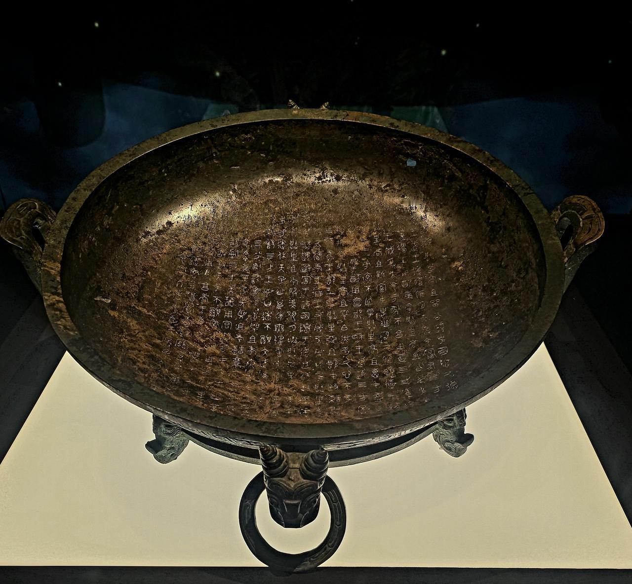 其二为逨盘,被誉为“青铜史书”,盘上372字铭文详实记述单氏家族八代人辅佐西周十二位君王的历史,印证了《史记·周本纪》的记载,2003年出土于眉县杨家村窖藏。