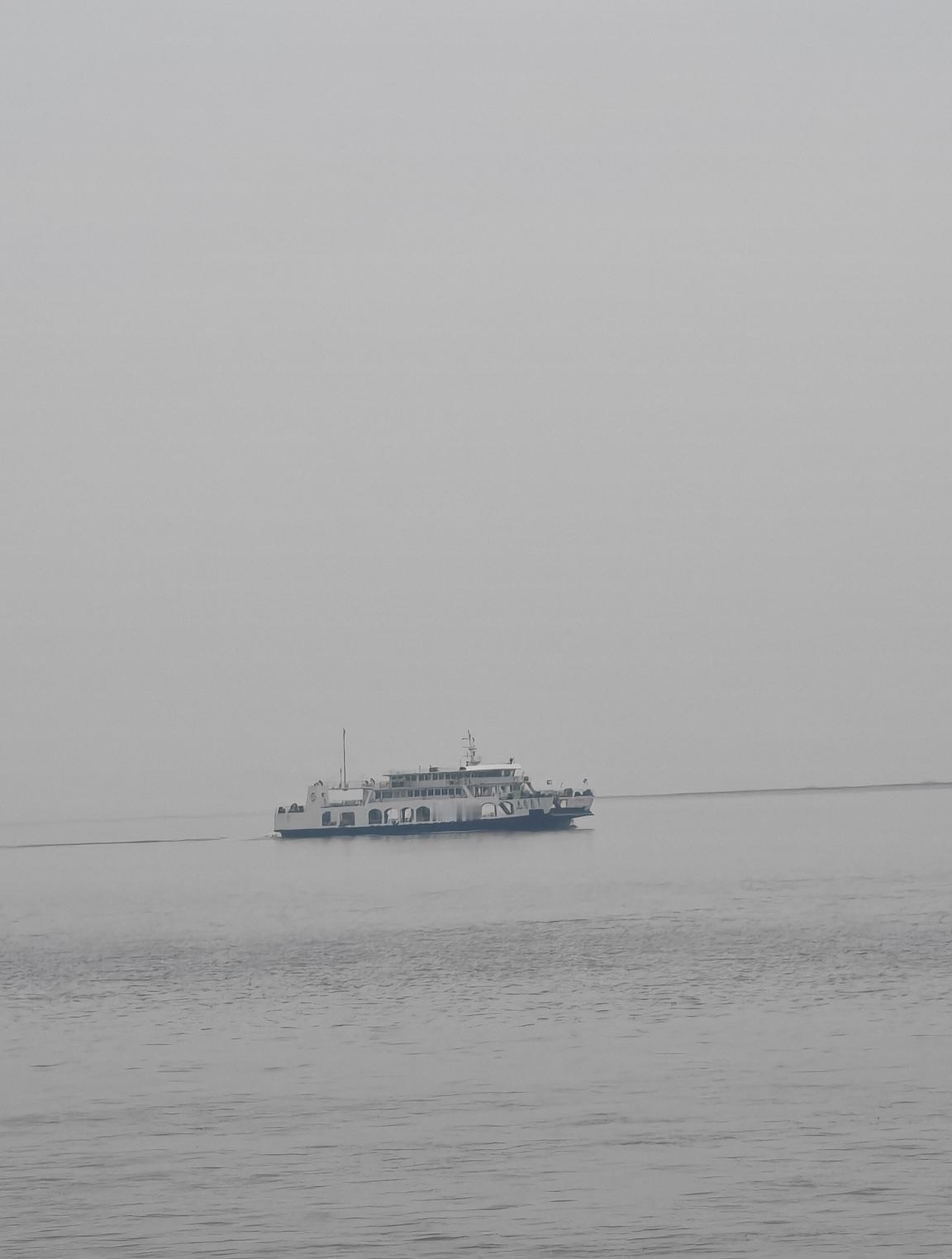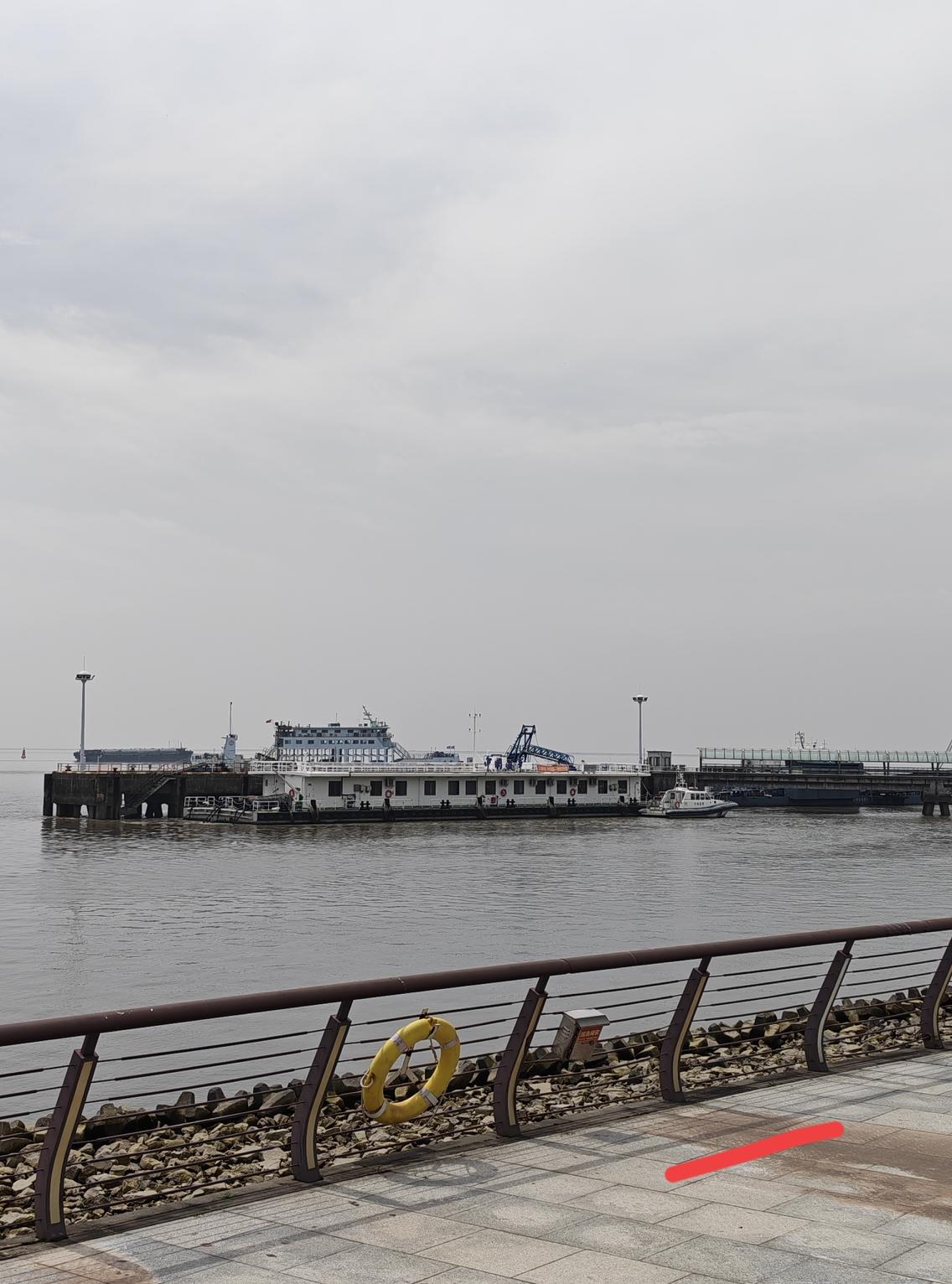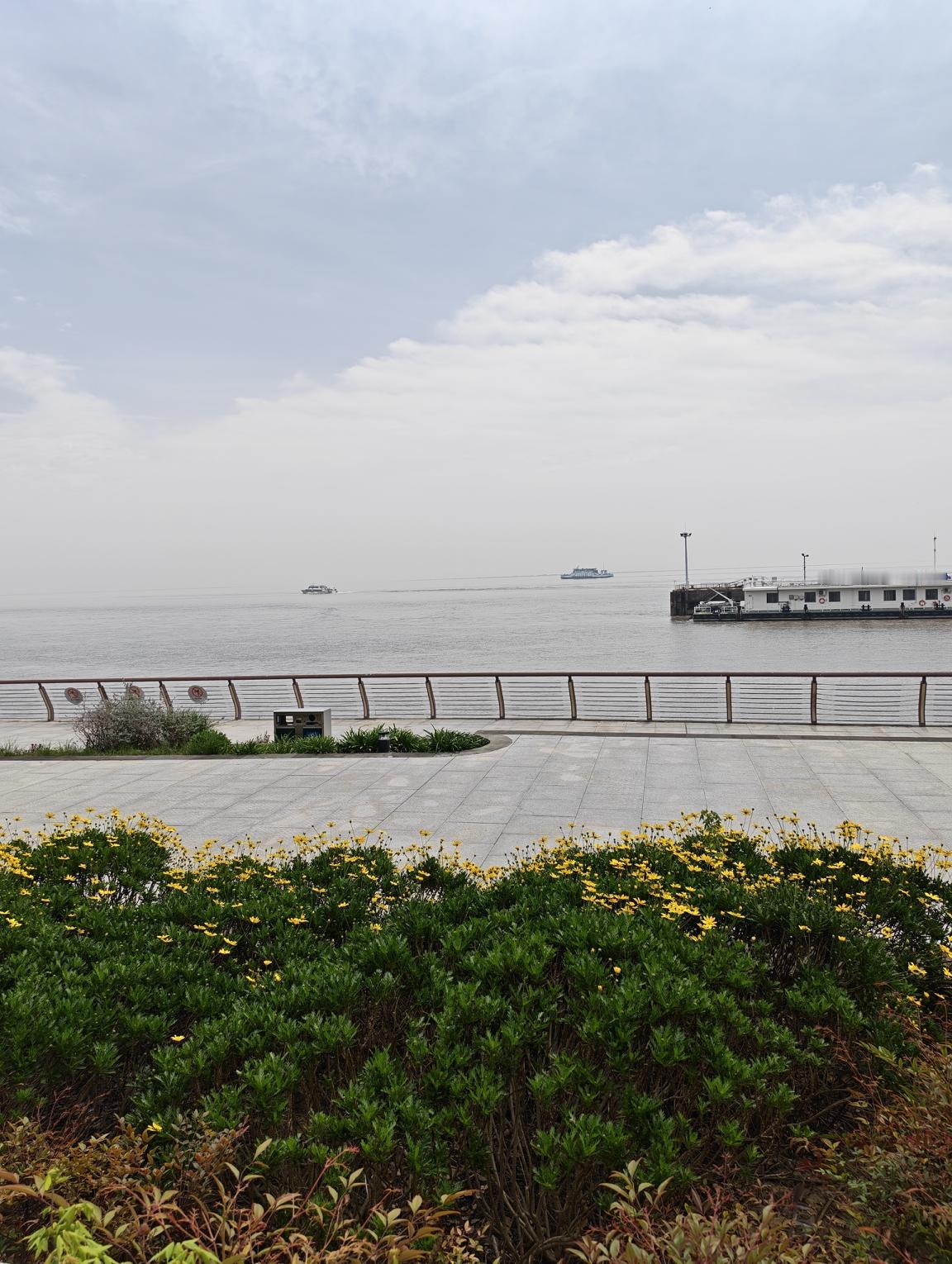 到崇明是一定要去南门大堤的,也就是南门沿江景观大堤,她就在崇明岛南端的城桥镇,是崇明核心的滨江地标。去这里很方便,南门汽车站出来,右手边向前,然后左转不到两百米右转,一百多米就到了码头,过去码头就到了长堤,堤望不到头,水望不到边,堤上有长廊,有长长的凳子,堤外是公园。走上大堤,眺望右手边一望无际的大海、来回穿梭的游轮与货轮,欣赏左手边高大的树木与斑斓的花朵,真的是心旷神怡!