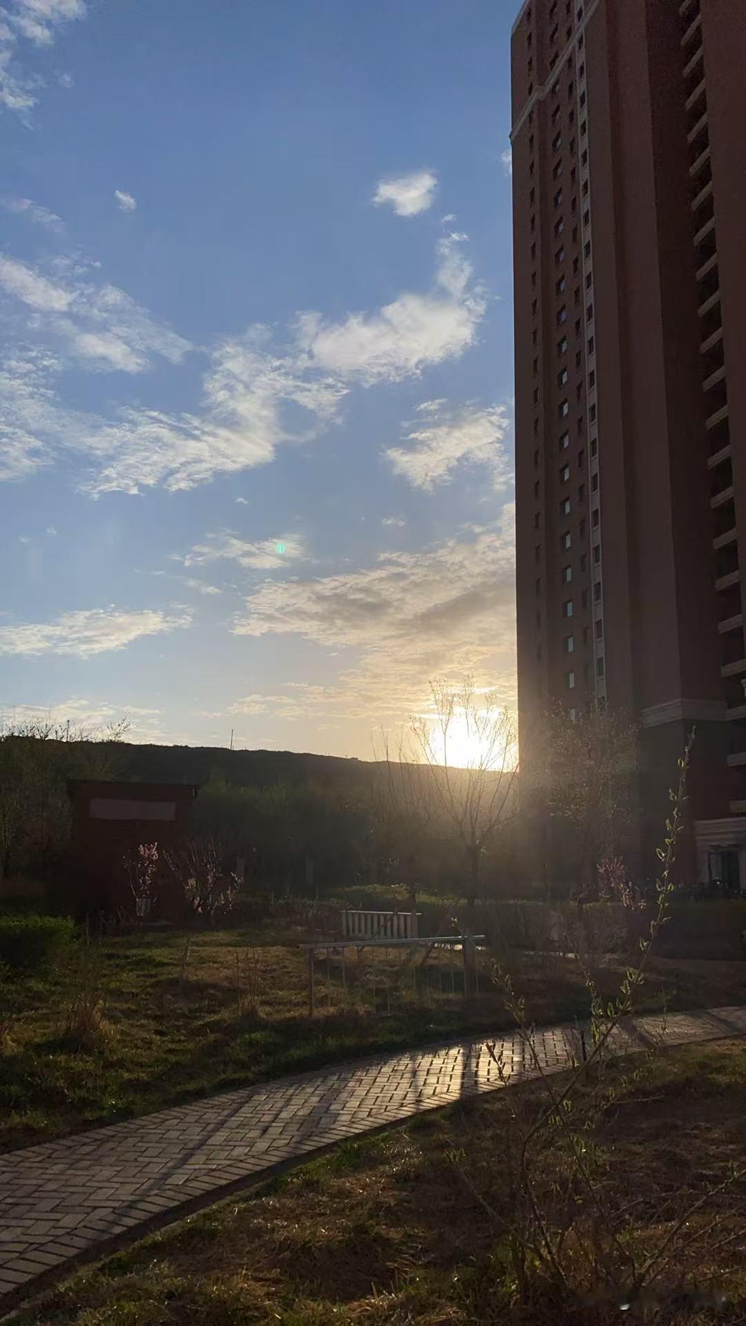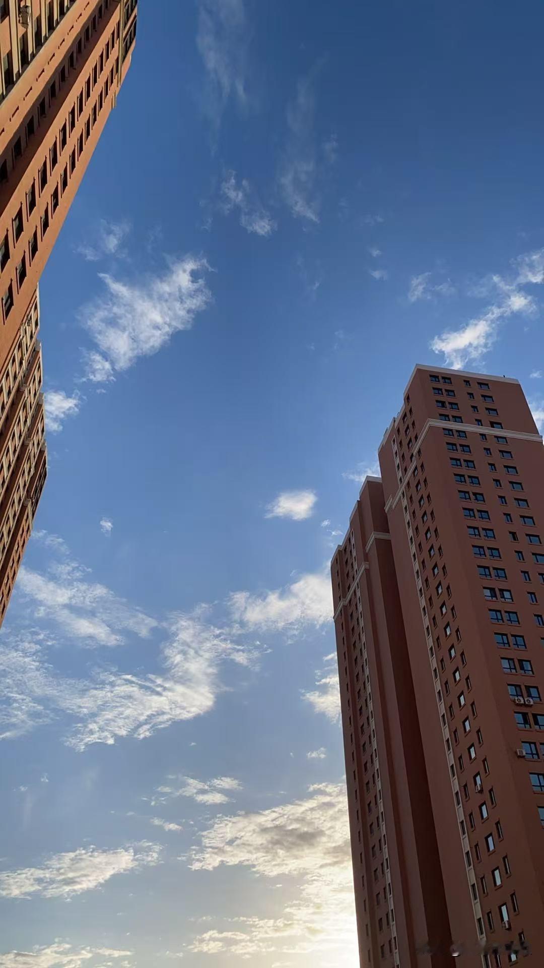 早上起来,出单元门,哇,天气真好,空气清新,阳光明媚,天空瓦蓝瓦蓝的,朵朵白云配