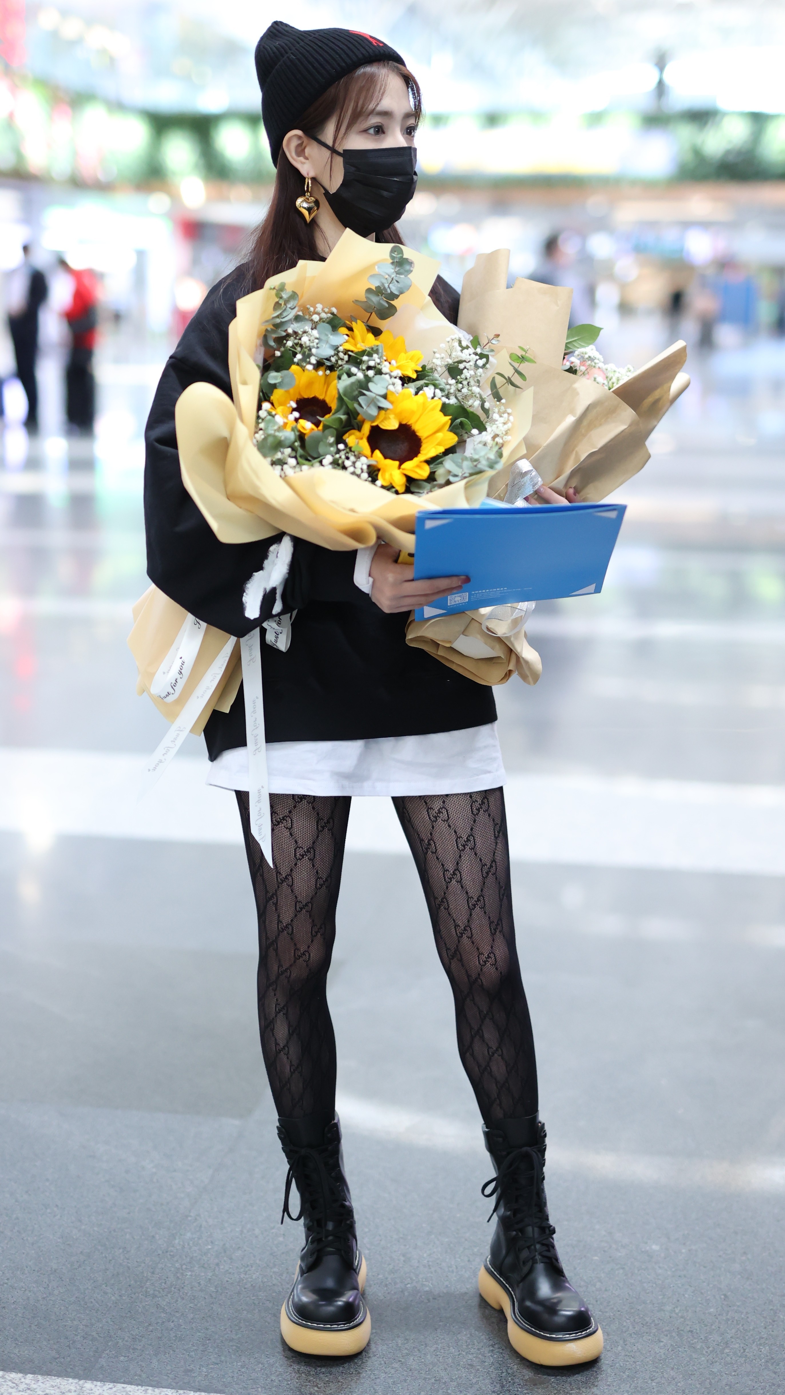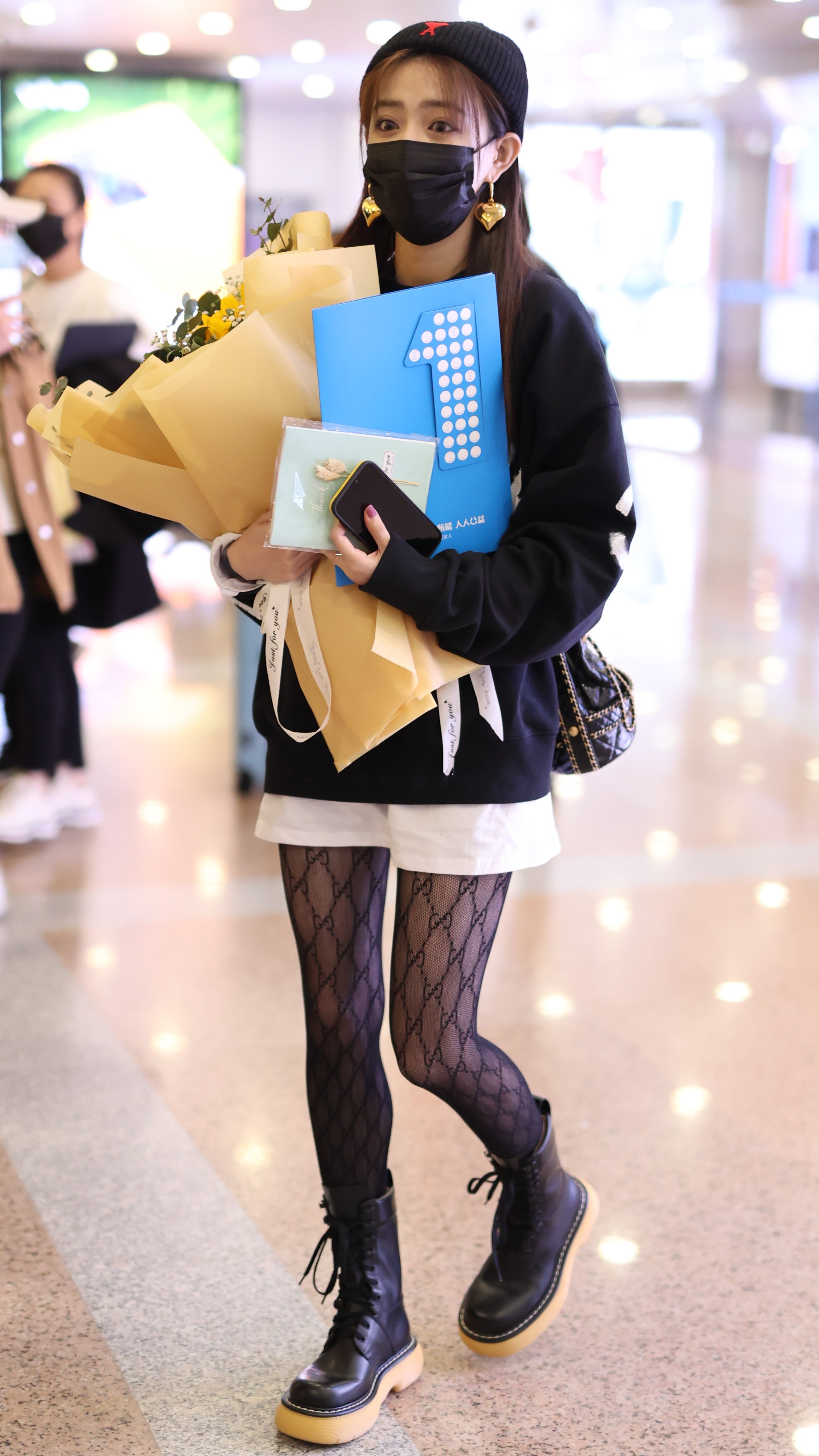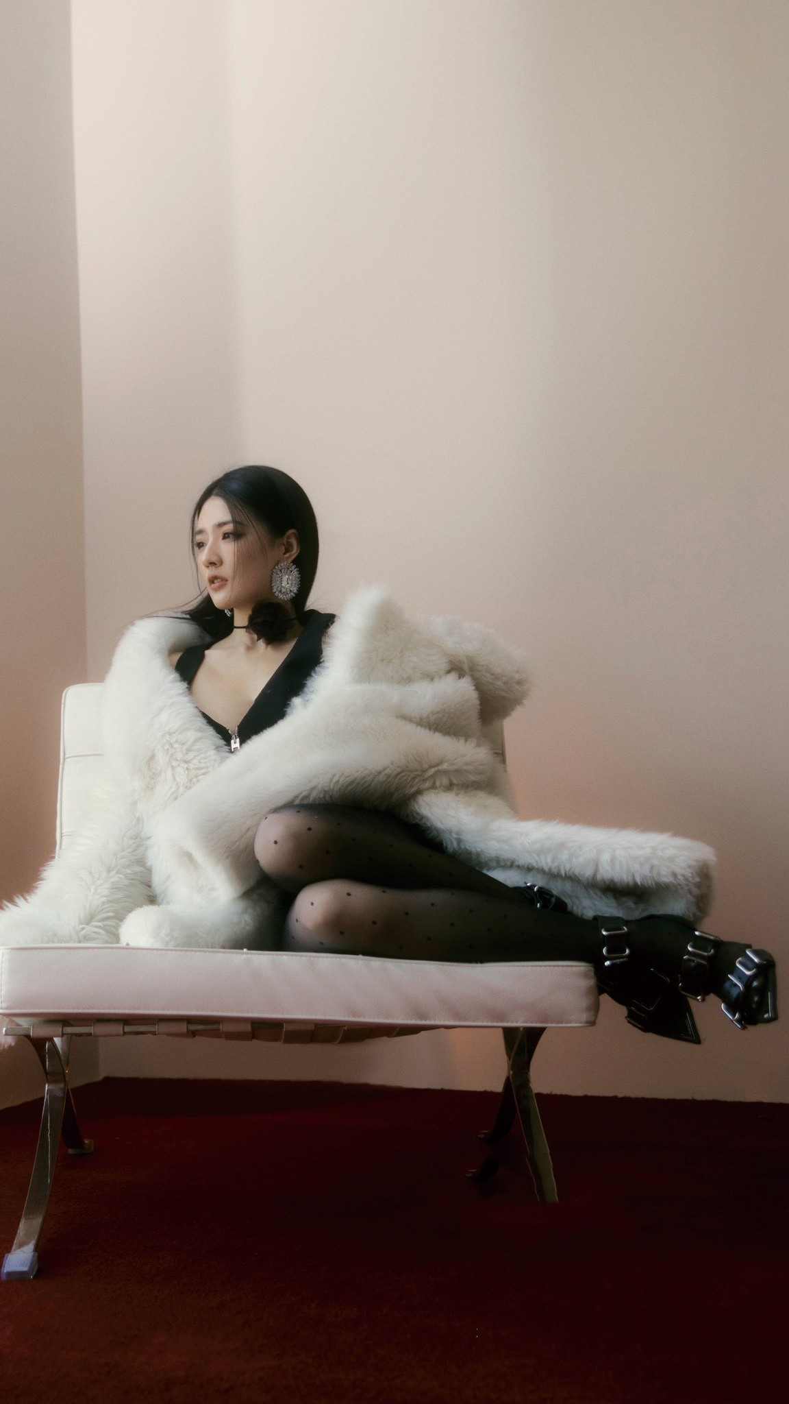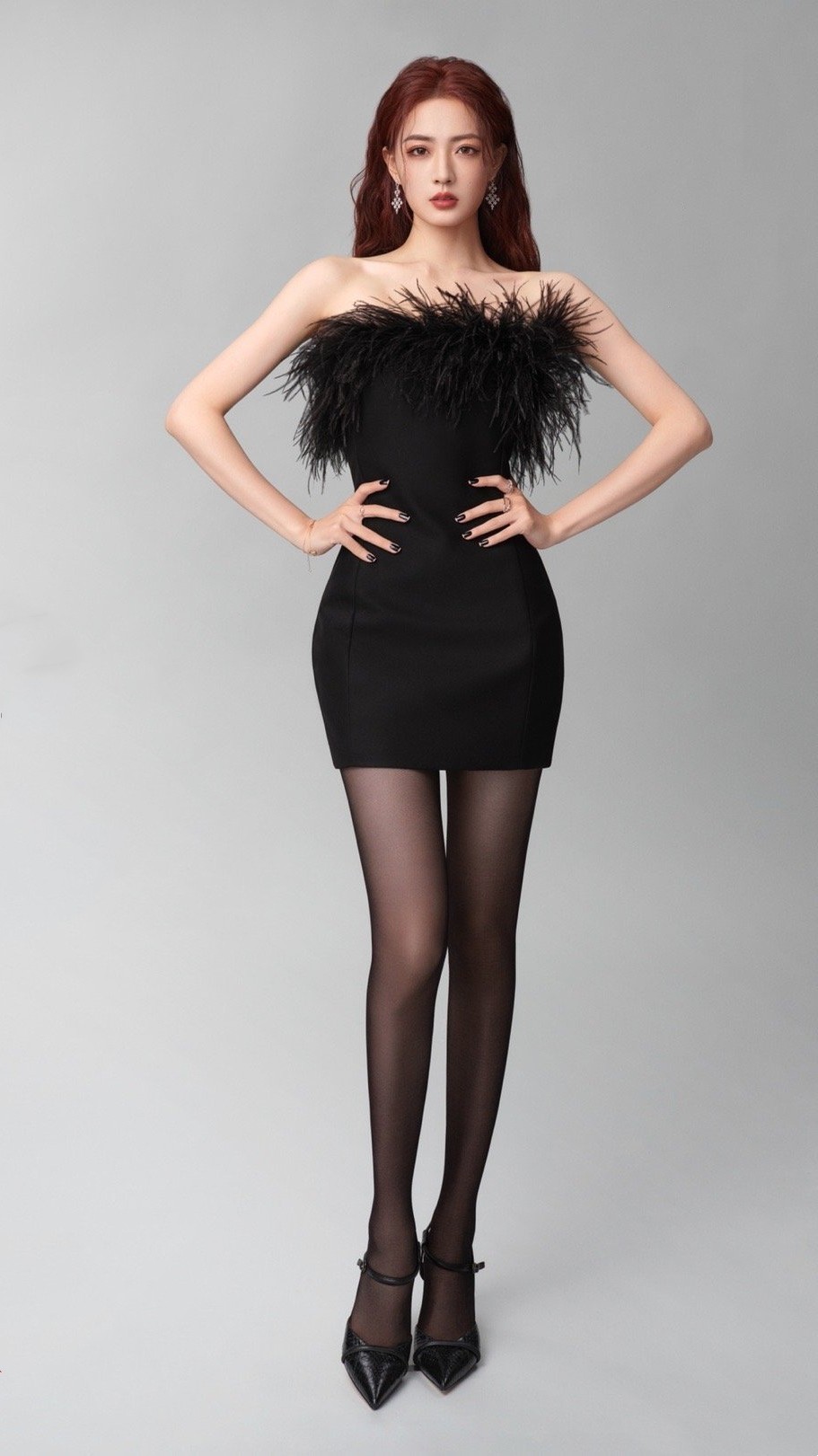 徐璐丝袜穿搭美学:黑色冷艳与柔美并存。徐璐