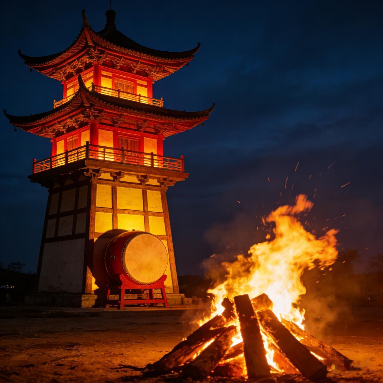 篝红火暖夜分明。