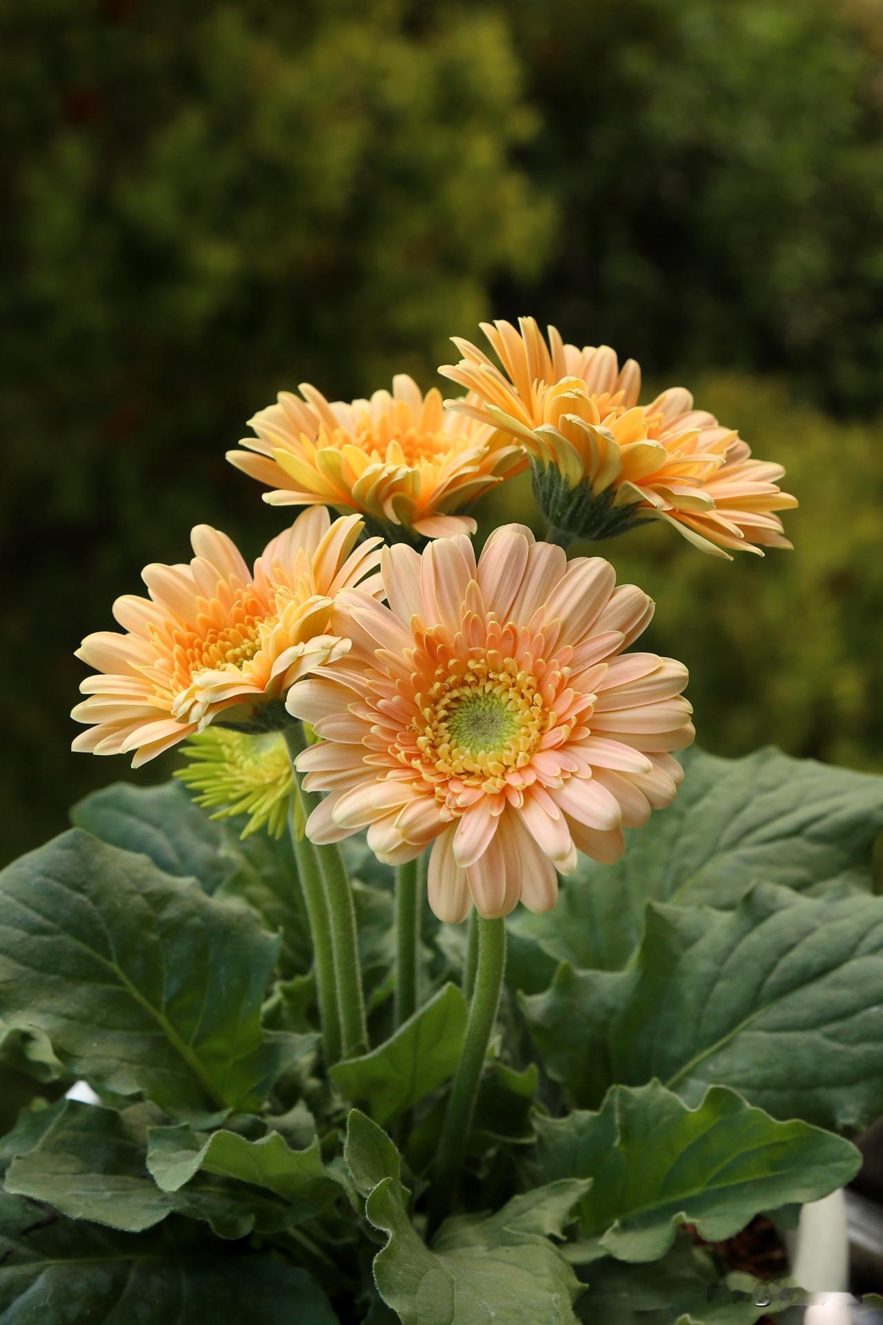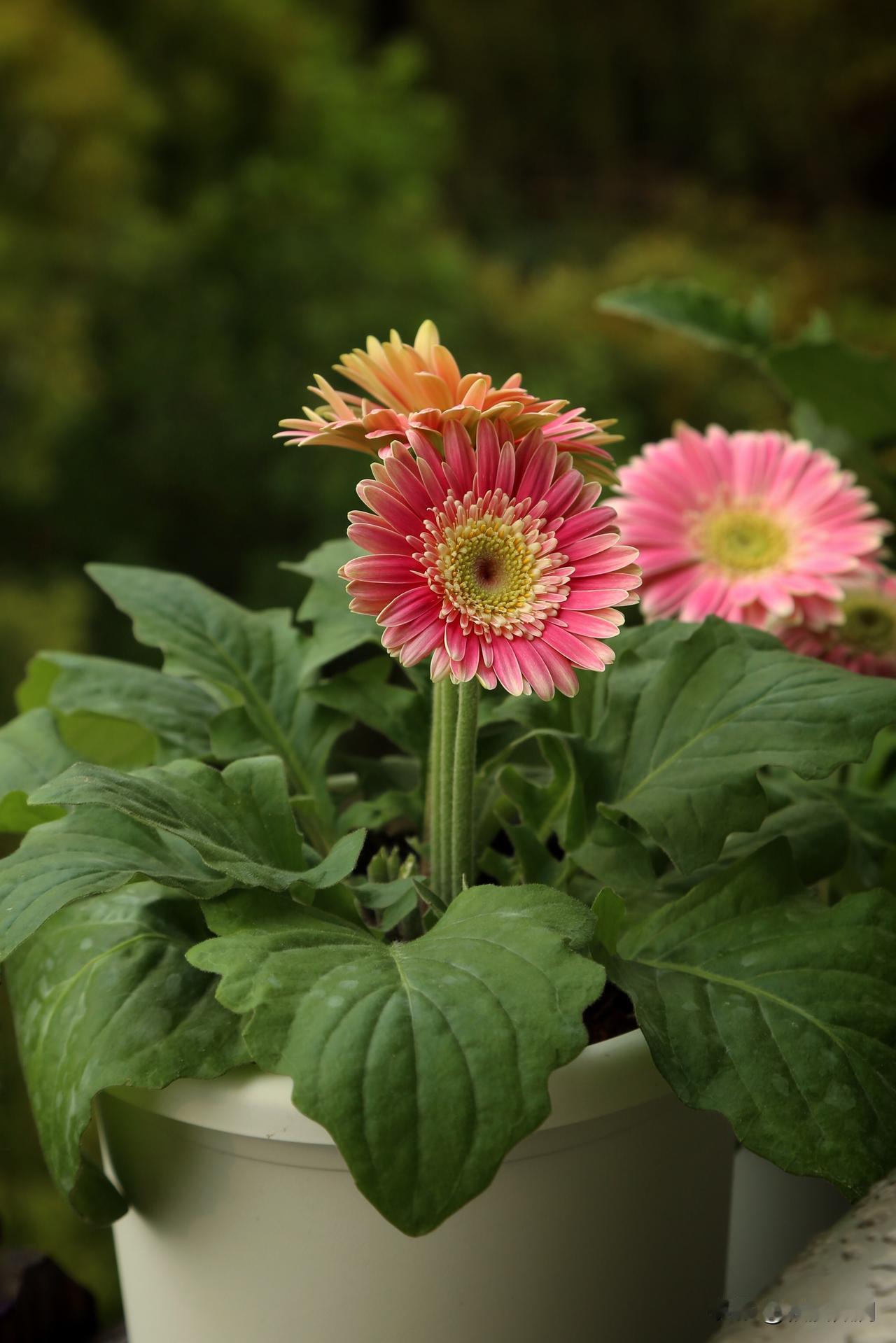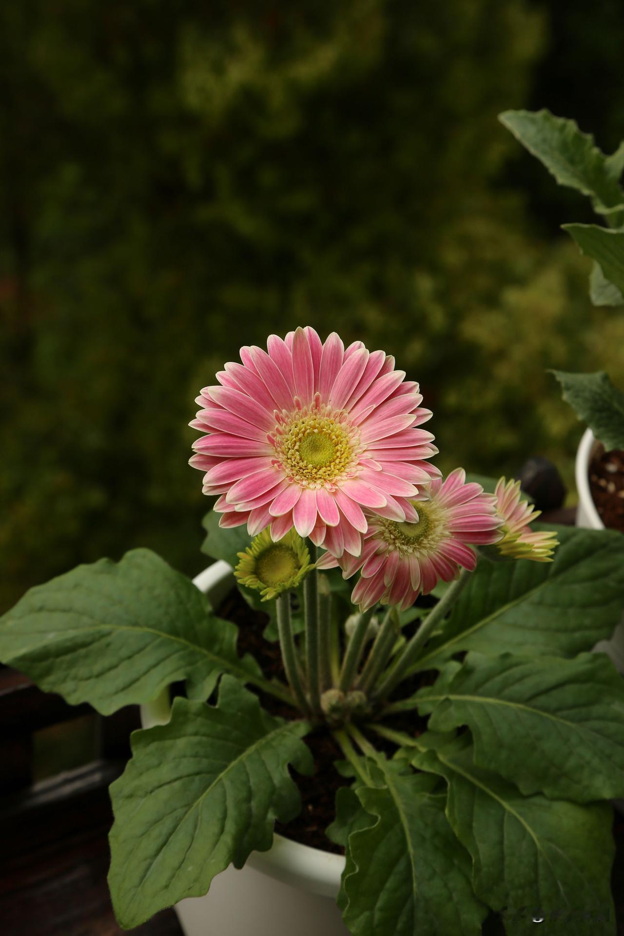 非洲菊有个有趣的别名,叫扶郎花,什么儿郎这么柔弱还需要扶一下吗,我很疑惑。网上搜了一下,因为非洲菊不能暴晒,不能缺水,否则长长的花茎很容易折弯,花朵低垂下来,仿佛喝醉了酒的新郎,要人扶着才能站直,于是就有了扶郎花这个俗名。我的经验确实如此,只要温度一高,阳光直晒下,非洲菊的叶片和花朵都会像得了大病一样萎靡不振,不知道的还以为它要挂了,其实挪到遮阴处就能缓过来。因此起了扶郎花这名字,联想力也是够丰富的,都是人才。