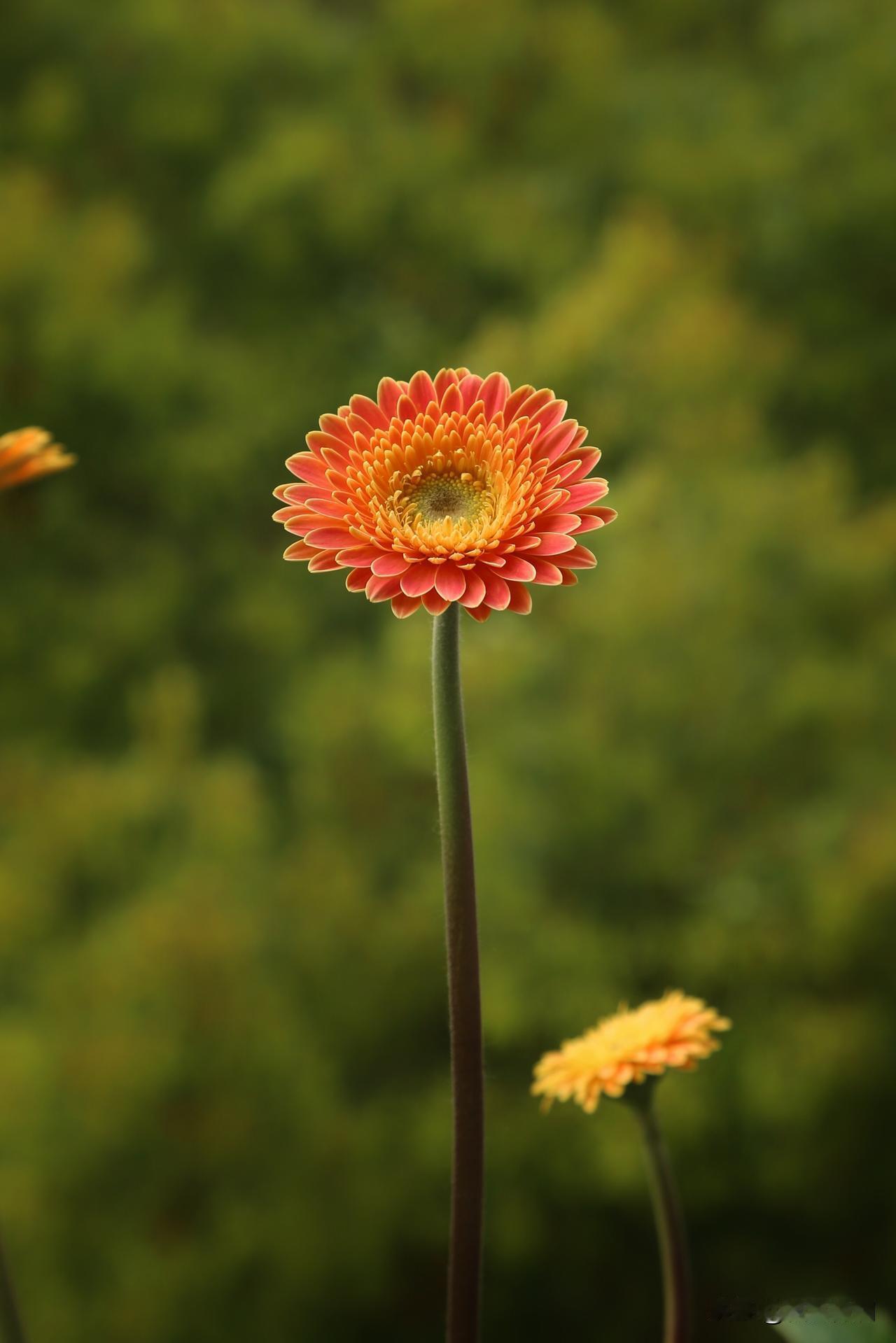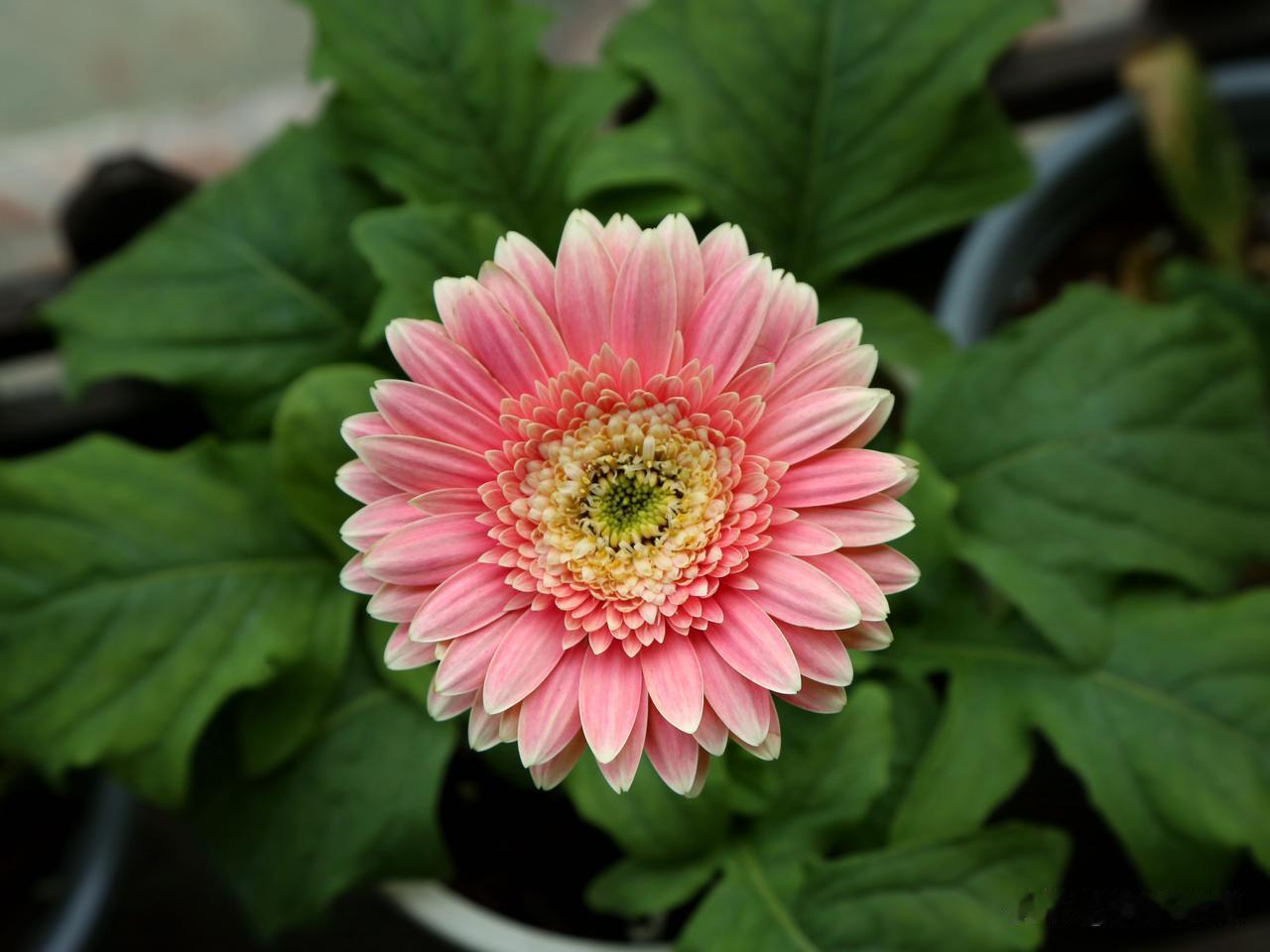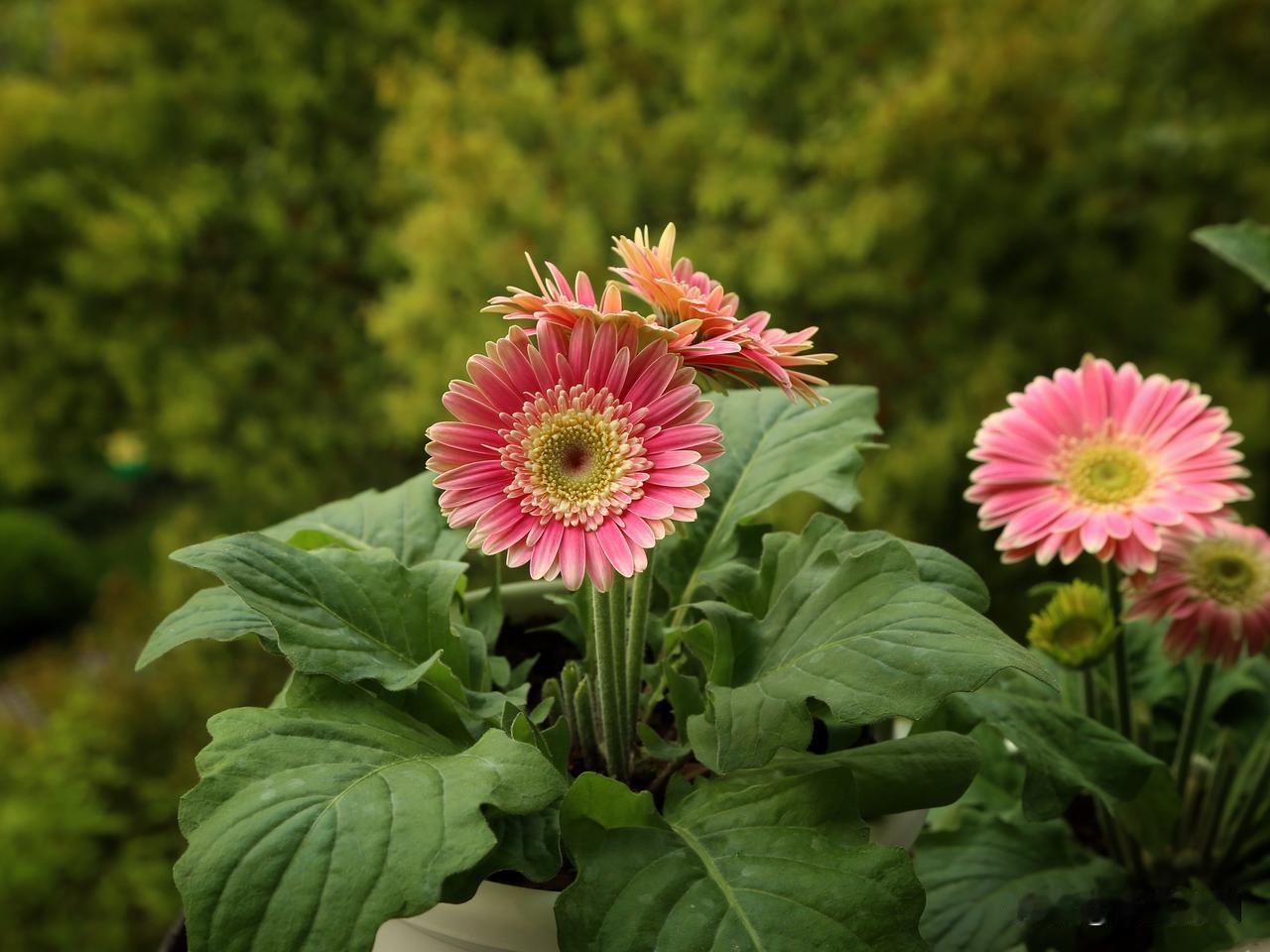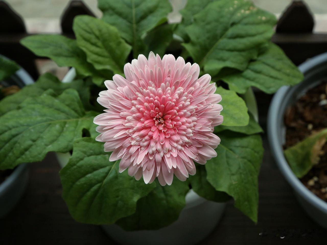 非洲菊有个有趣的别名,叫扶郎花,什么儿郎这么柔弱还需要扶一下吗,我很疑惑。网上搜了一下,因为非洲菊不能暴晒,不能缺水,否则长长的花茎很容易折弯,花朵低垂下来,仿佛喝醉了酒的新郎,要人扶着才能站直,于是就有了扶郎花这个俗名。我的经验确实如此,只要温度一高,阳光直晒下,非洲菊的叶片和花朵都会像得了大病一样萎靡不振,不知道的还以为它要挂了,其实挪到遮阴处就能缓过来。因此起了扶郎花这名字,联想力也是够丰富的,都是人才。