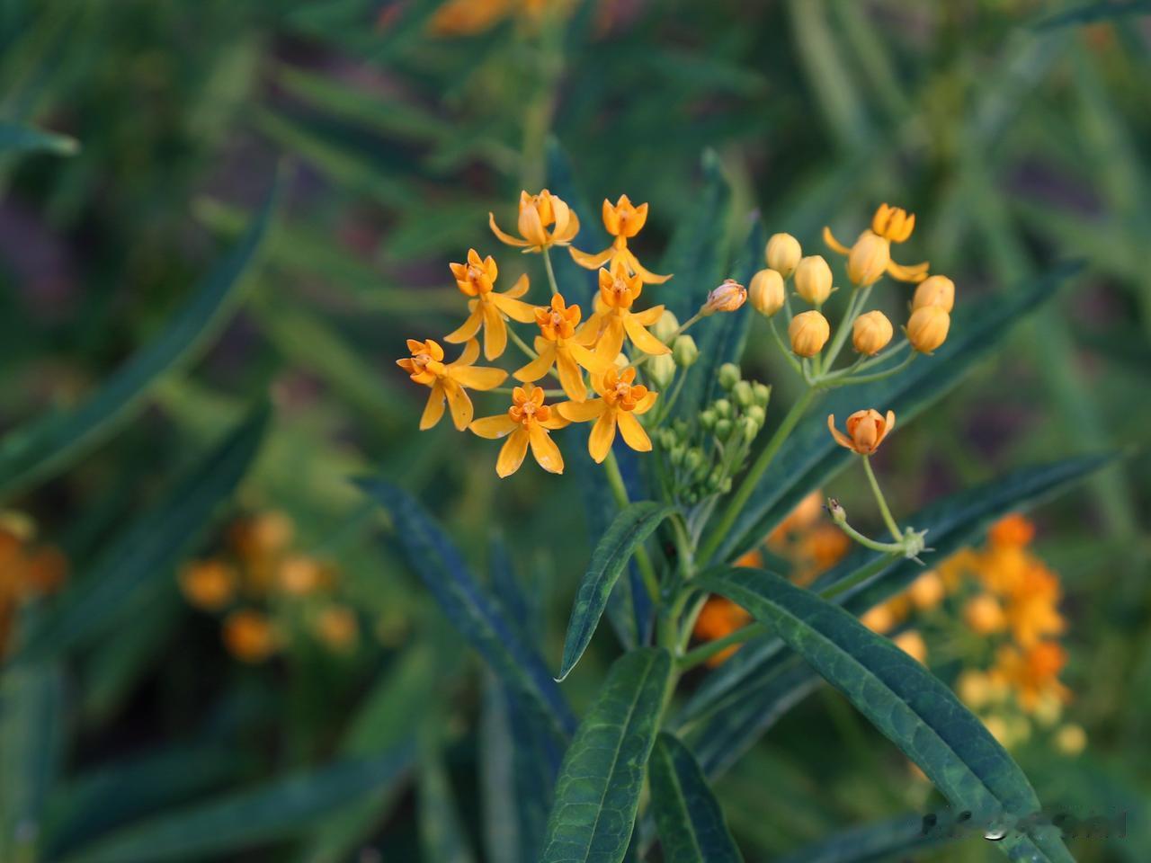 莲生桂子,第一次见到这种花是在成都的郊区,两年前的事了。那时候见到的是黄红配色的,这次在三亚见到的是全黄色的。花朵下半部分像个反折的小小莲座,上半部分像桂花,所以俗名叫“莲生桂子”,就像中国古汉字有许多是象形字一样。它的学名叫马利筋,原产地在中美洲,属夹竹桃科,汁液有毒。花朵很细小,近看挺可爱的。