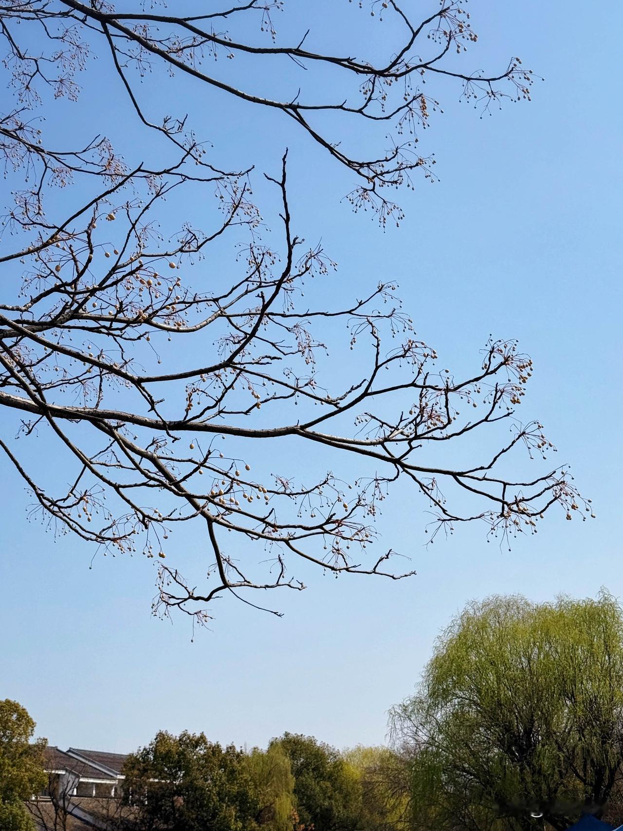 在嘉兴市区里的月湖老街,河边几棵高大的树上结满了金黄色的果实,远看特别漂亮。有点好奇这是什么树,猜来猜去猜不到,就索性拍了照片去问问“形色”,回答说是苦楝树。原来我只见过开花时的苦楝树,花叶落光,结了果的苦楝树竟然是不认得的。结了果的苦楝树都这么漂亮,可想而知,盛花期的这几棵树该有多美了。