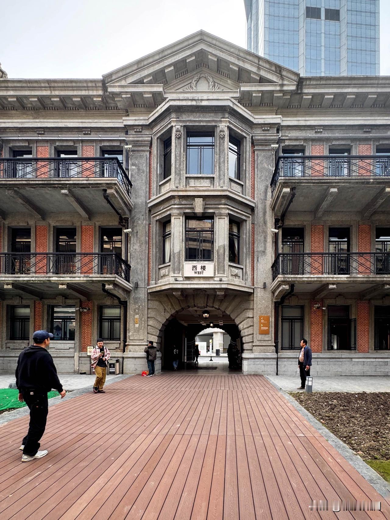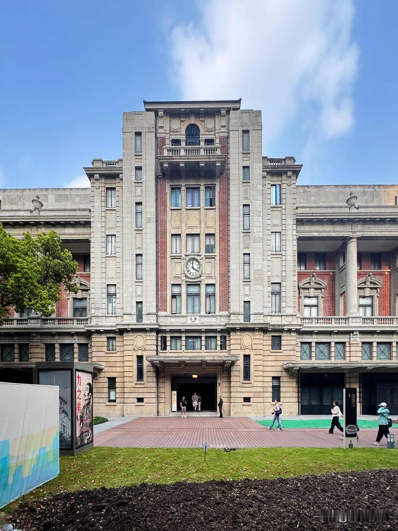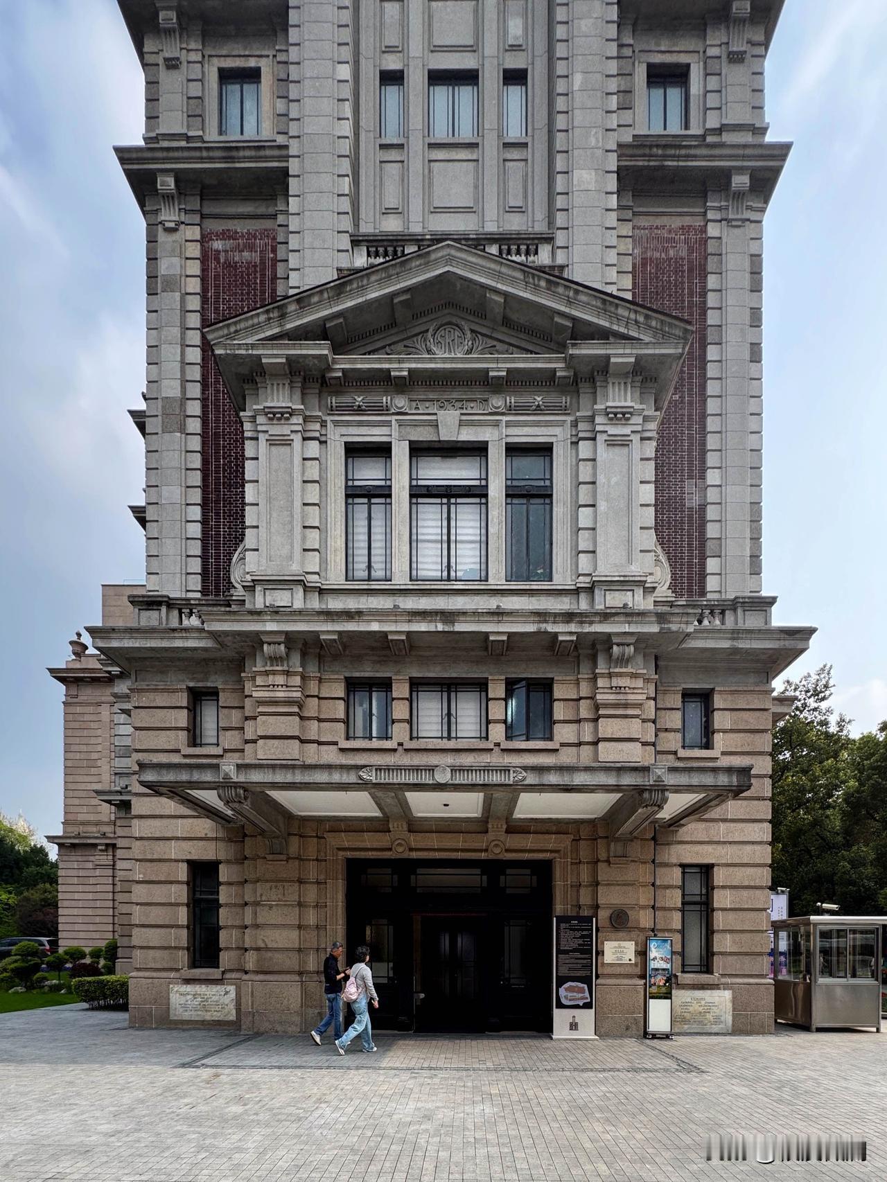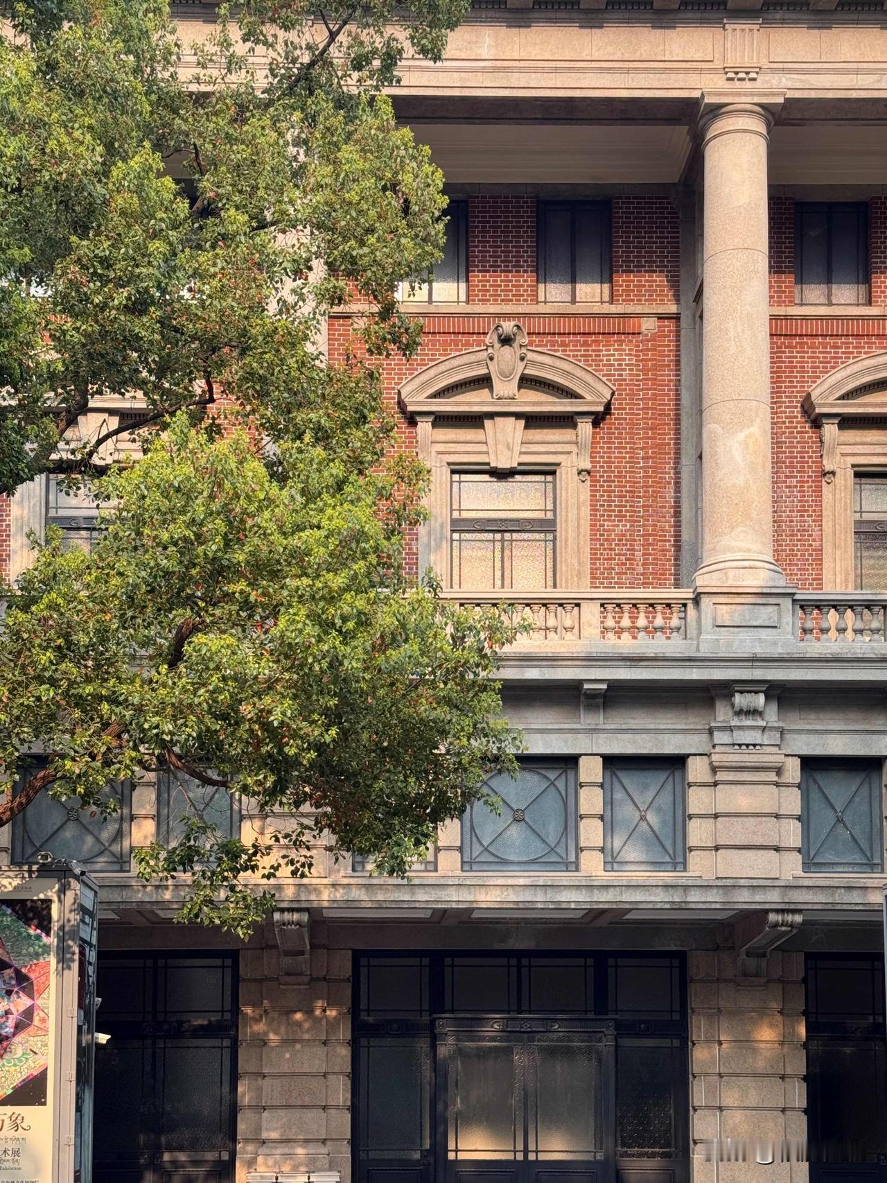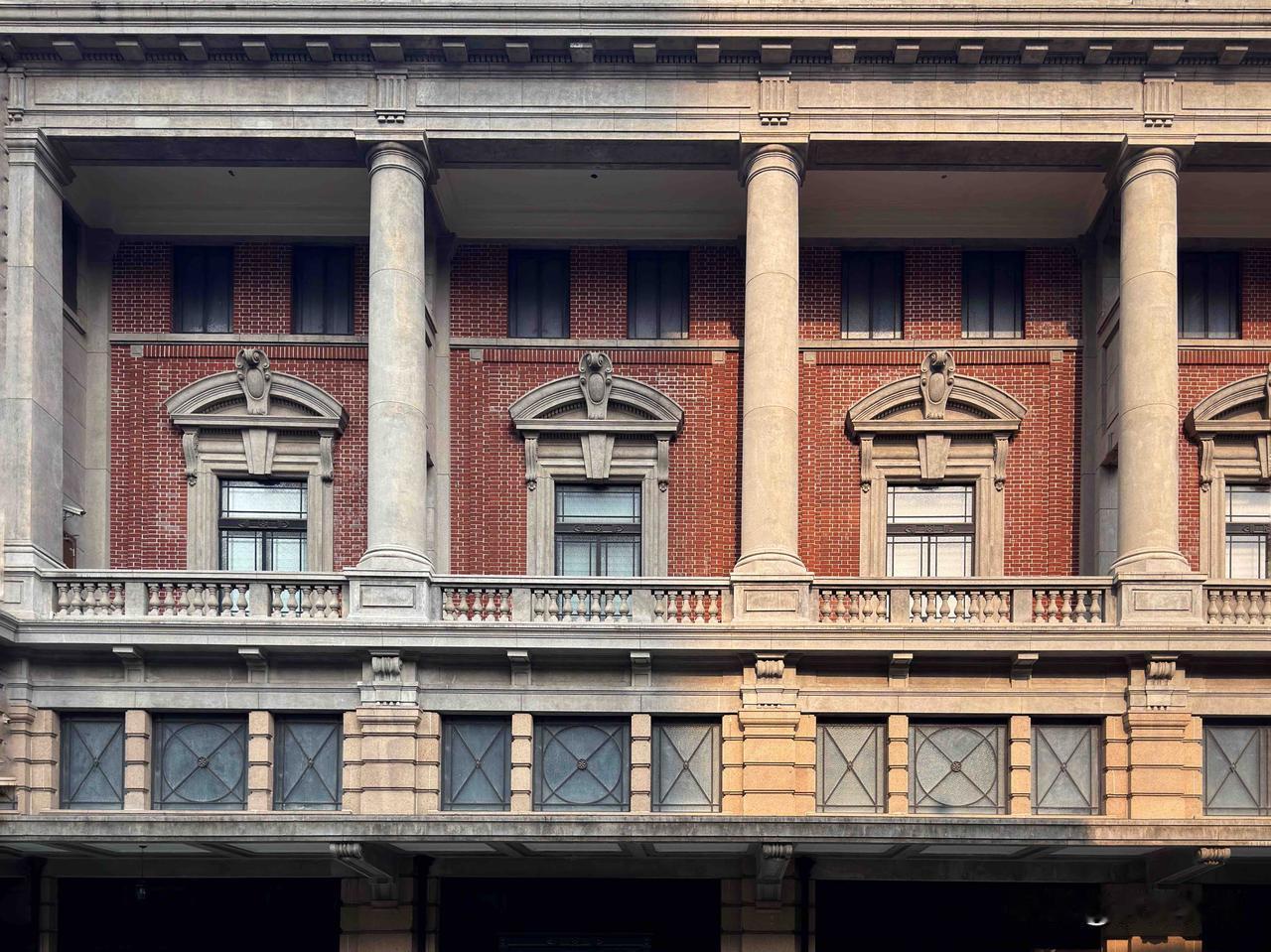 跑马总会大楼建成于1933年,设计方是英国人创办的建筑设计事务所马海洋行,承建方是余洪记营造厂,整个跑马场的建设据说花了白银200万两。大楼占地面积8900平方米,建筑面积21000平方米,高四层。红砖,石材,柱廊,凸窗,三角坡顶,53米高的钟楼,外立面构图严谨工整,古典主义的对称美被体现得淋漓尽致。