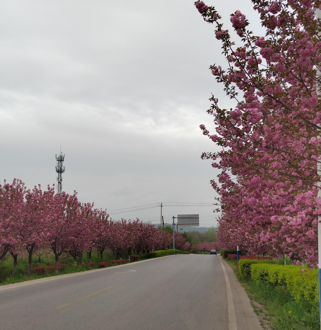 由此向南的那条路上两边盛开的樱花夹道,极美的一条公路。