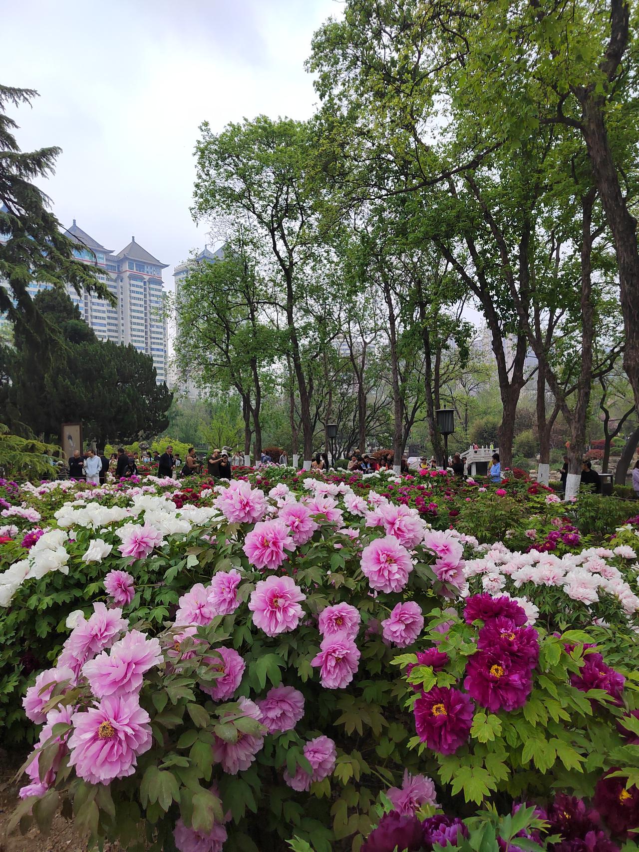 兴庆宫公园的牡丹基本上都在沉香亭周边。当下正值盛花期。由于地理位置好,交通方便又不收门票,真是人流涌动,观者如潮啊。