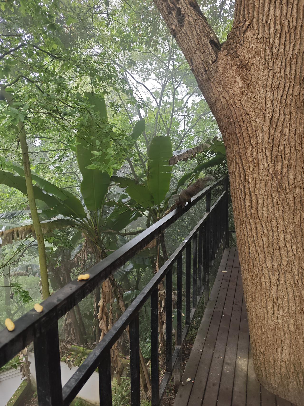 今天到歌乐山去爬山,在松鼠茶肆旁边的栏杆上,看见了一只可爱的小松鼠,蹦蹦蹦跳跳,上下腾挪,十分可爱。