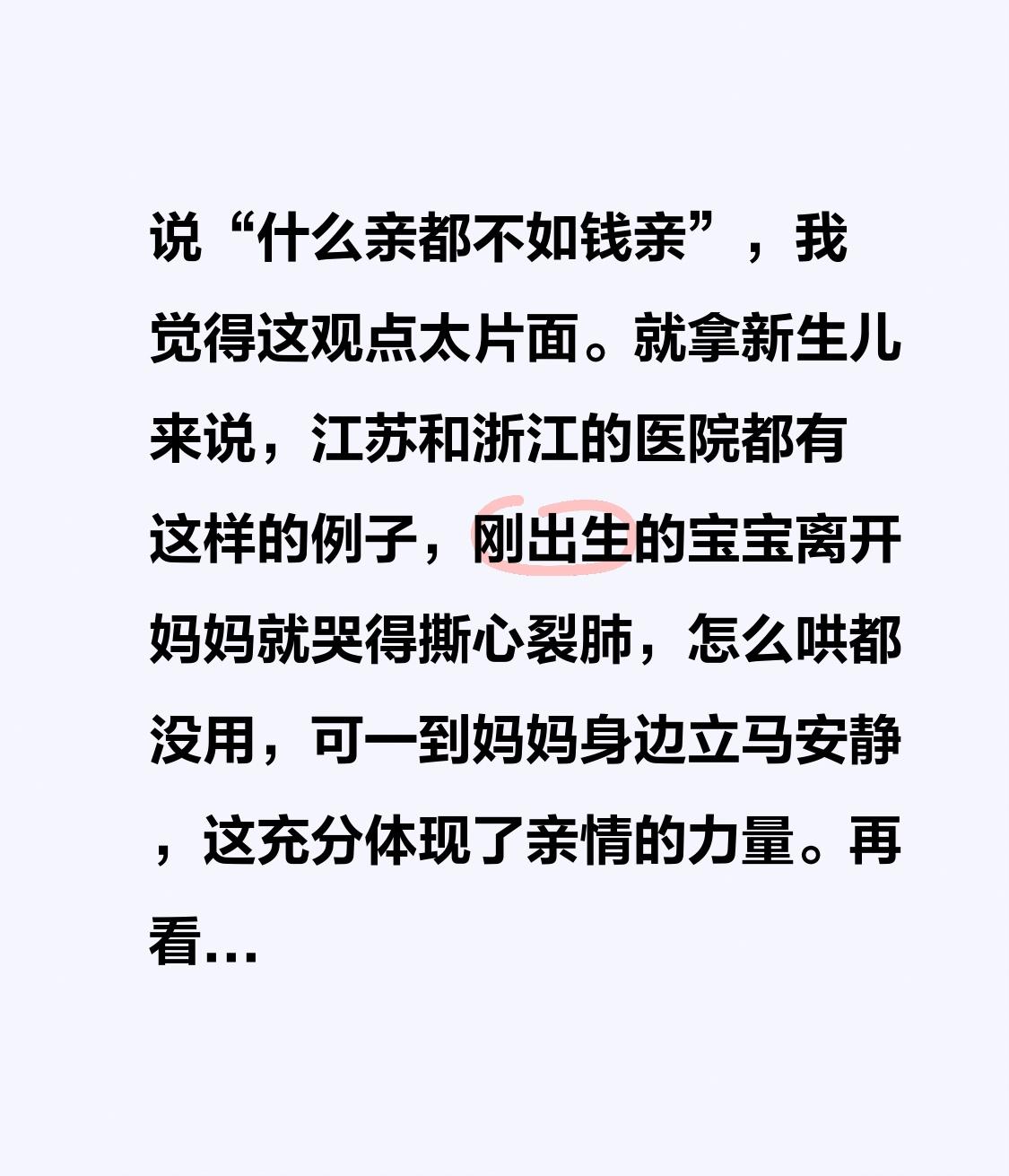 说“什么亲都不如钱亲”,我觉得这观点太片面。