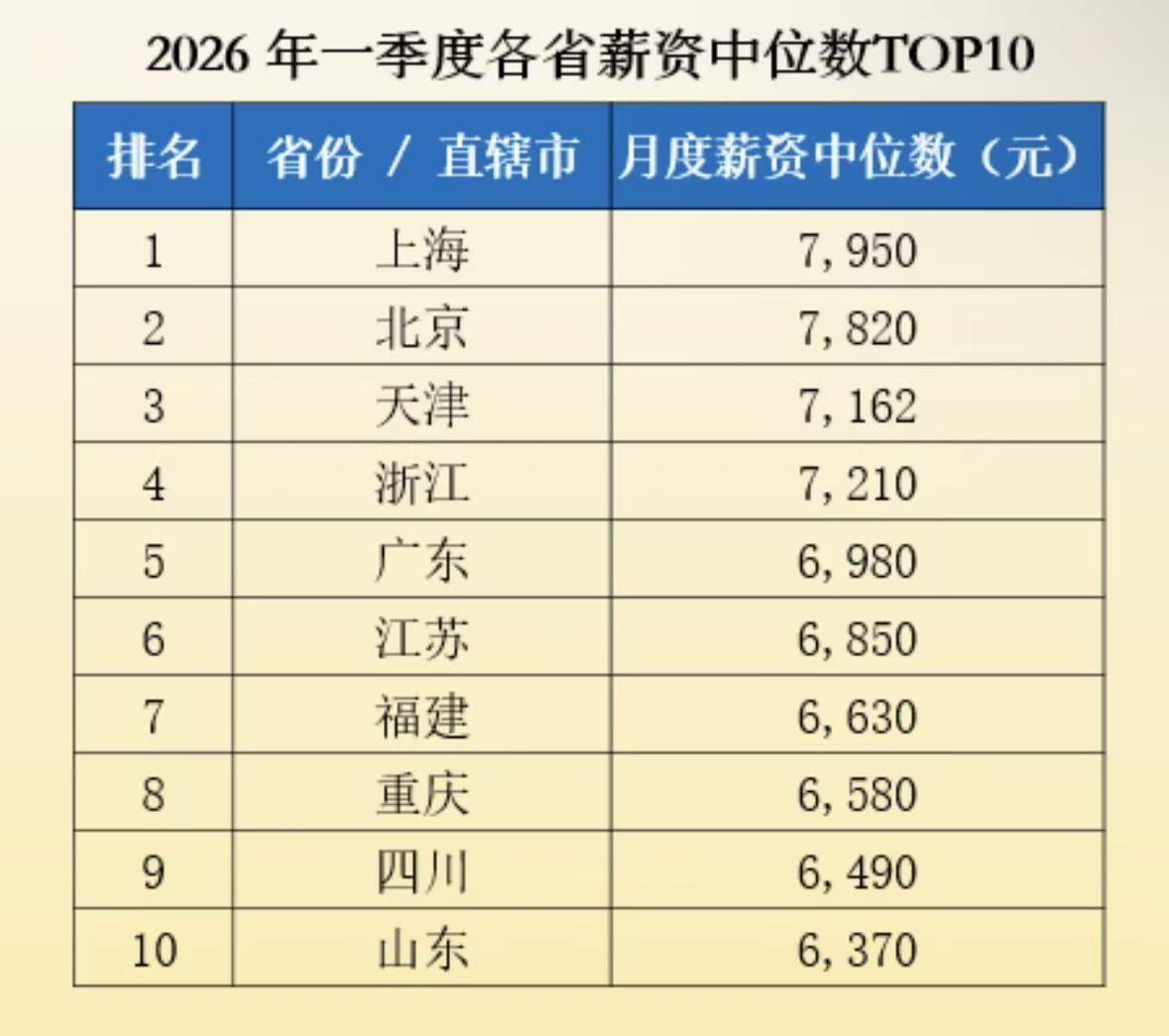 2026一季度各省工资出炉!普通人真实工资到底有多少? 在平均薪资排名里,上海