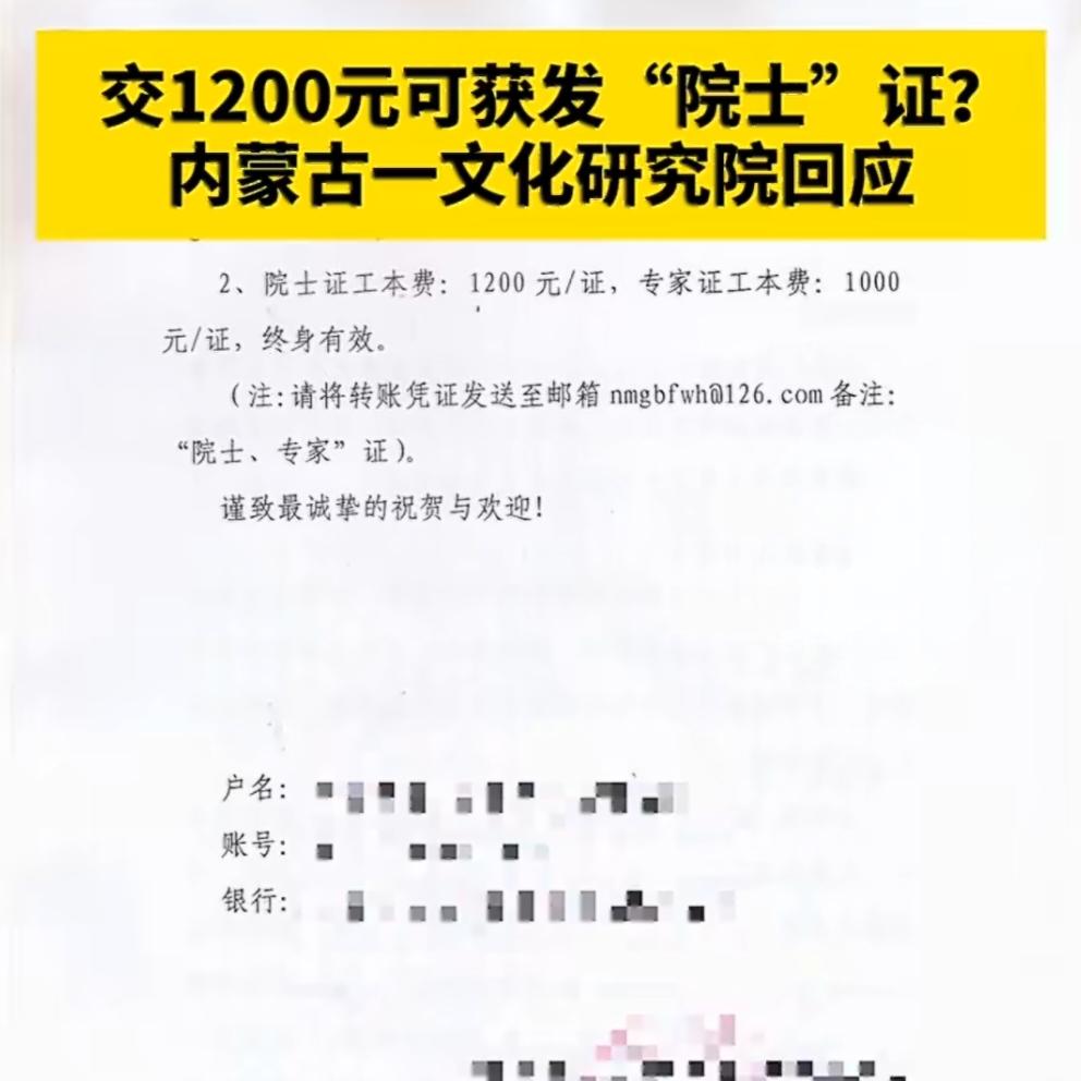 花1200元就能买“院士”证,内蒙古这所研究院回应了,结局太离谱!