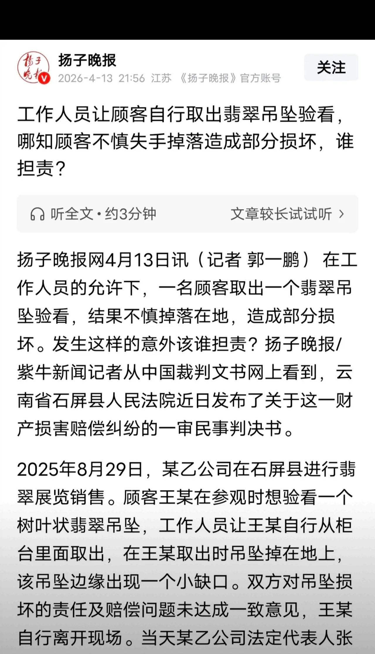 🔥网友“市井小娘”:商家全责好吗!自己不按流程来,让顾客自己拿贵重翡翠,还好意思要天价赔偿?脸呢!