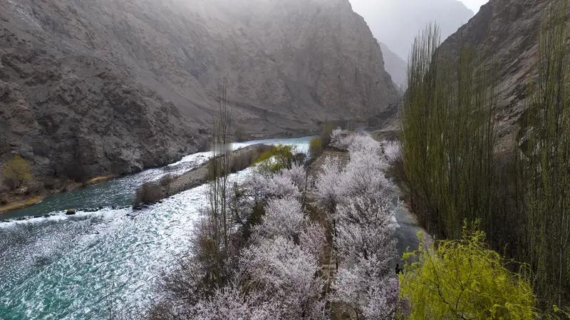 土屋间杏花惊艳绽放,粗壮枝干撑起满树粉嫩,春风一吹,花瓣摇曳如粉色精灵开派对。阿克陶县塔尔乡杏花岛随手一拍就是壁纸级大片。最佳赏花期在3月下旬到4月5日,穿浅色仙女裙或民族风服饰很出片。自驾或包车前往,沿途风景也美。找当地向导还能发现小众机位,这样的美景让人忘却烦恼。