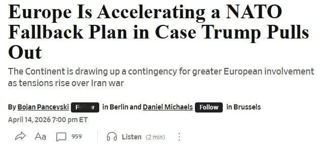 美国《华尔街日报》报道称,欧洲正为美国退出北约做准备,欧洲将这一计划视为北约内部的“自愿联盟”。