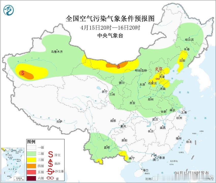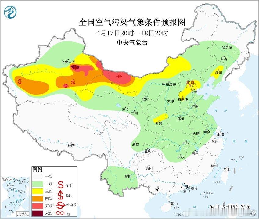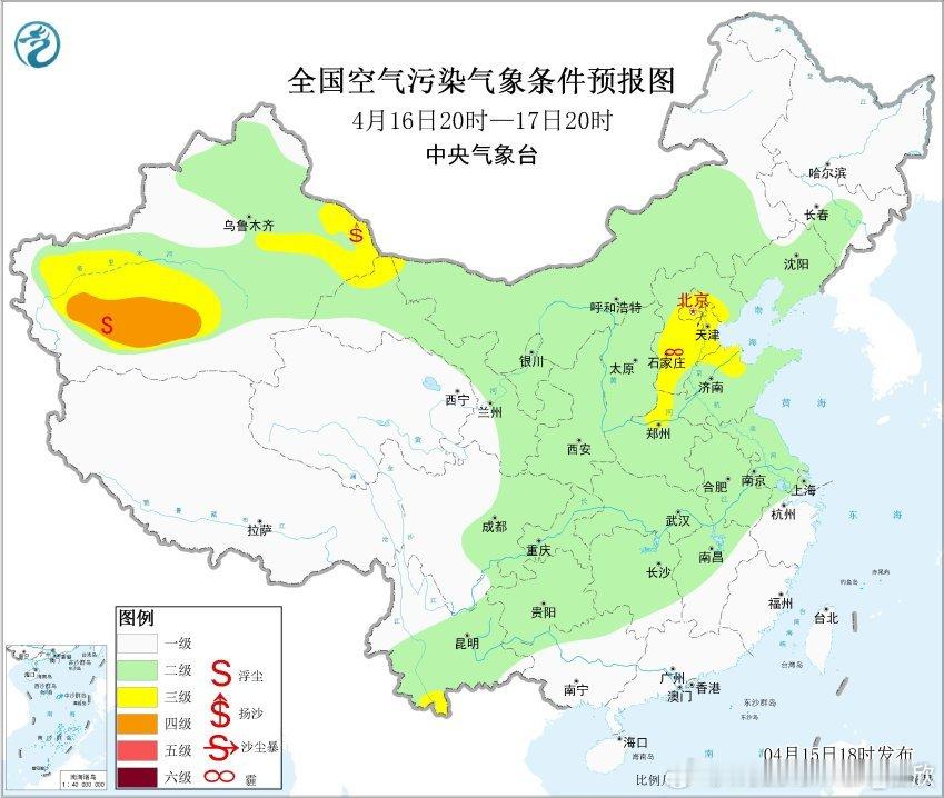 此外,16-18日在华北可能还有些轻微的霾。16日在内蒙古西部,17日至19日,西北地区大部、内蒙古中西部、华北北部等地自西向东将有扬沙或浮尘天气,其中,新疆东部、内蒙古西部局地有沙尘暴。