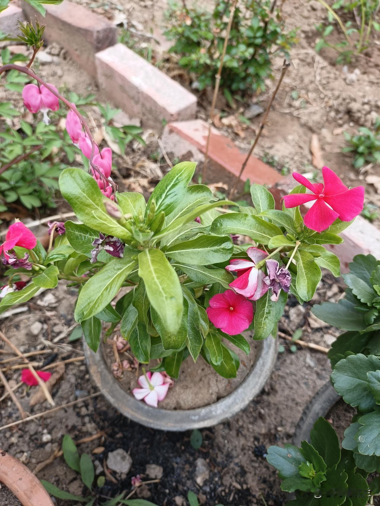 我有几盆花老妈搬出来了,现在开花的只有长春花,还有太阳花。