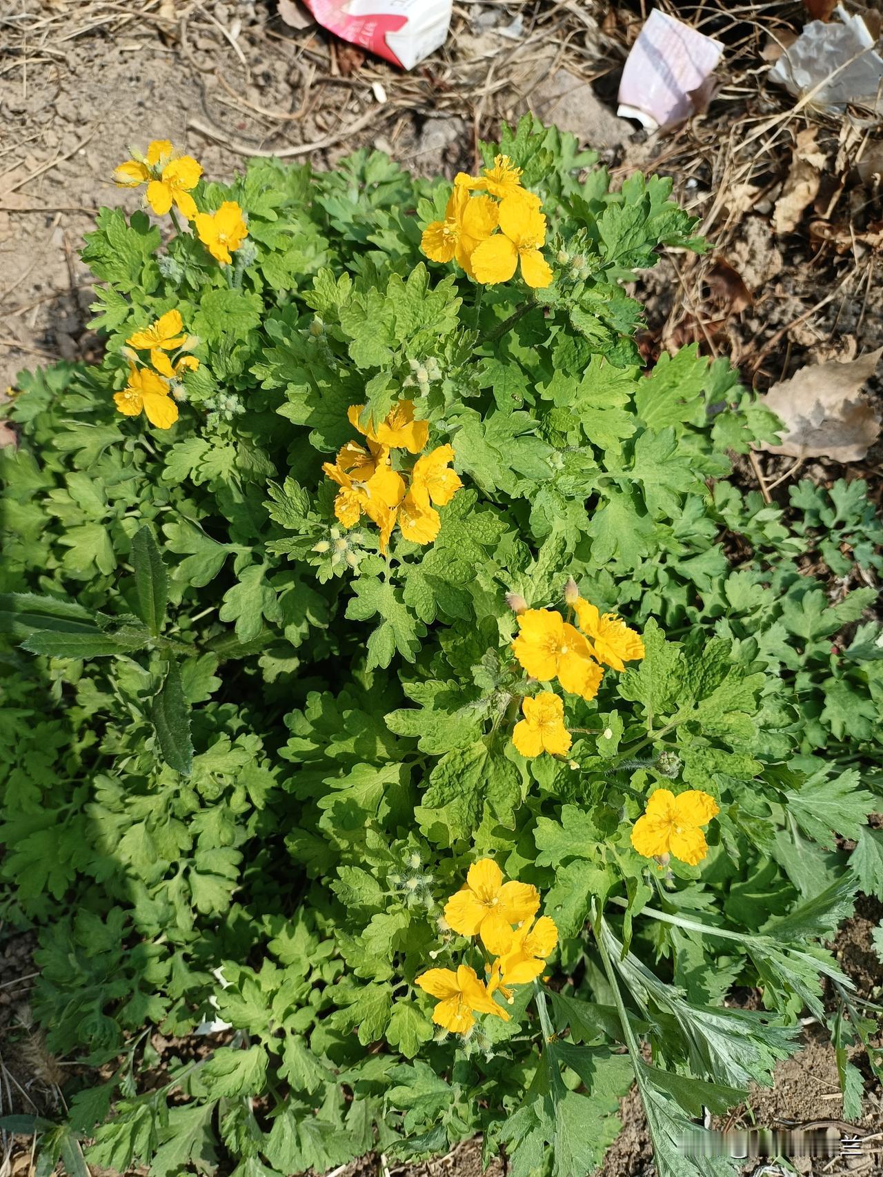 邻居菜园里有很多黄连,黄连开花也很漂亮,黄莲开花是黄色的小花,颜色很亮。