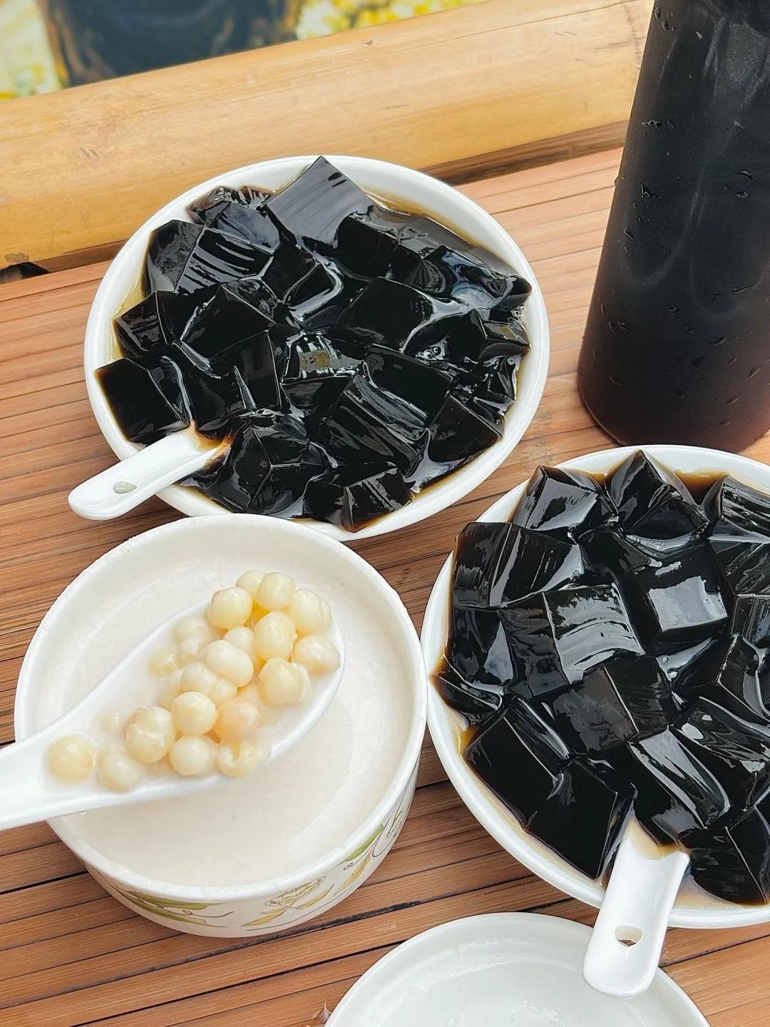 传统工艺讲究“三洗三滤、慢火慢熬”,现代技术则在保留天然的基础上实现标准化生产。吃法多样:加蜂蜜或红糖水是经典原味;配水果、花生碎更添清爽;粉状凉粉可热饮,也可与粉葛煲汤,兼具清热与滋补。
