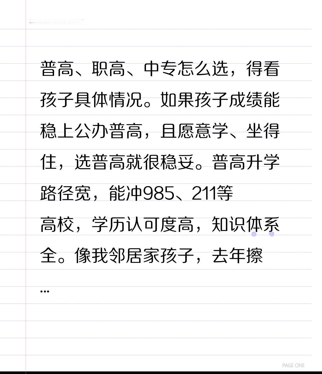普高、职高、中专怎么选,得看孩子具体情况。