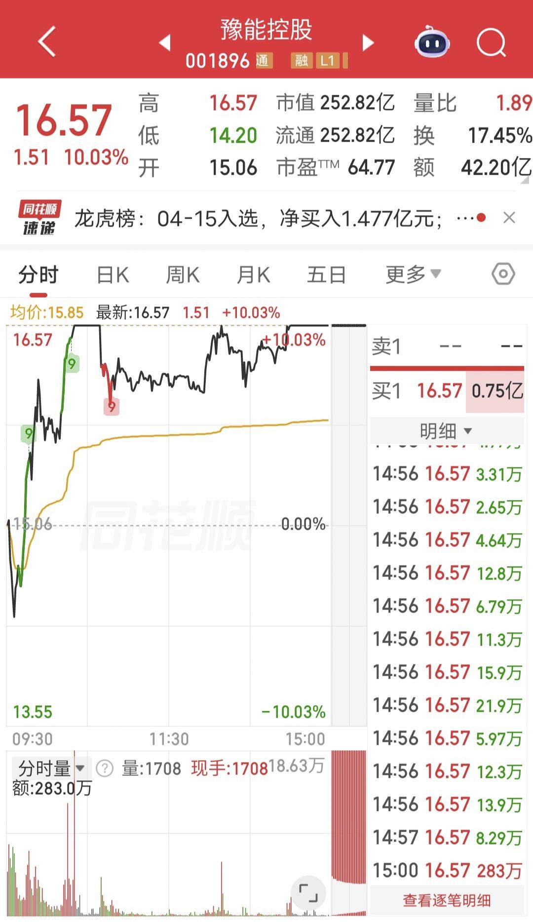 今天豫能控股涨停后被砸,尾盘再次封涨停。