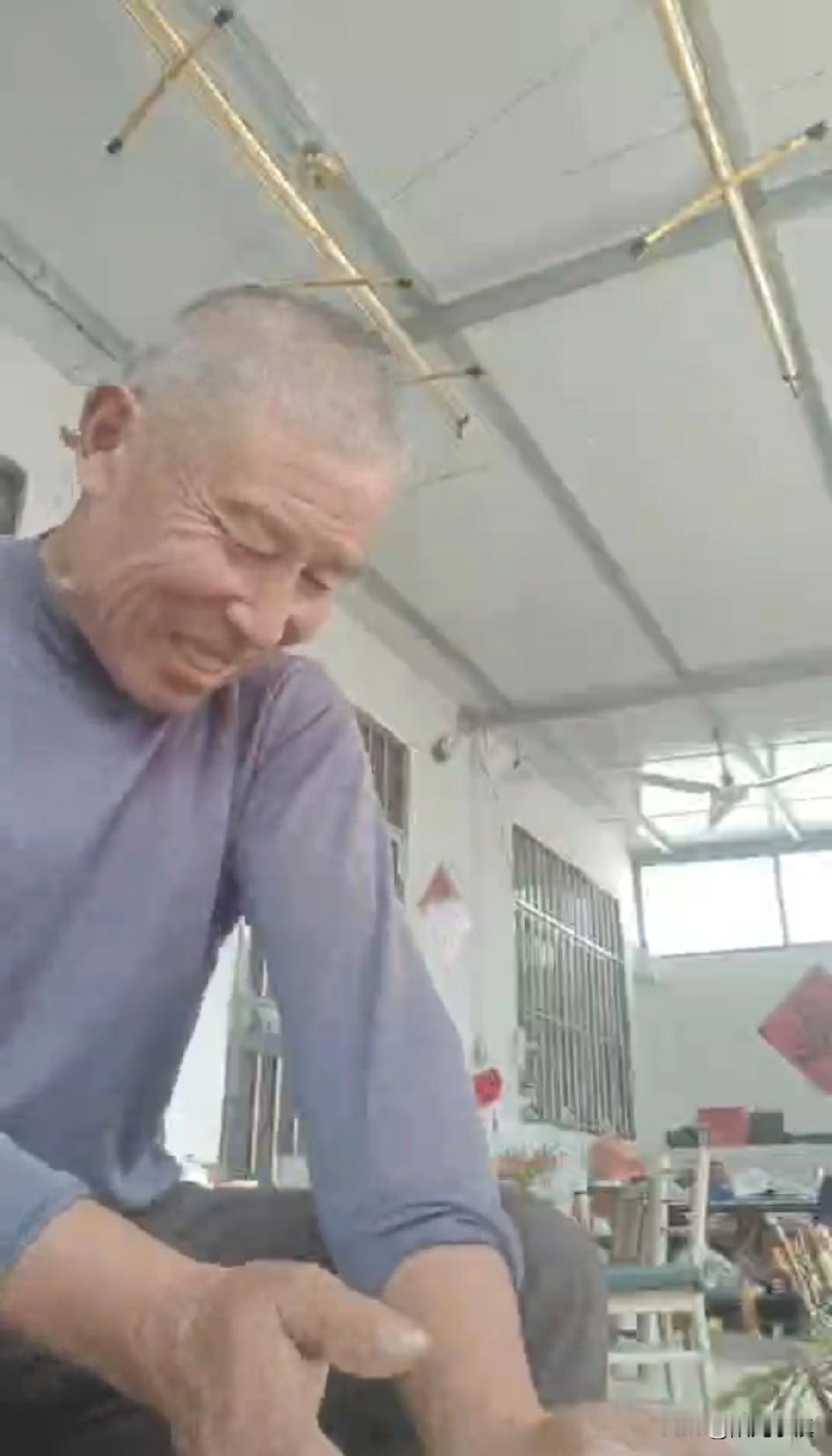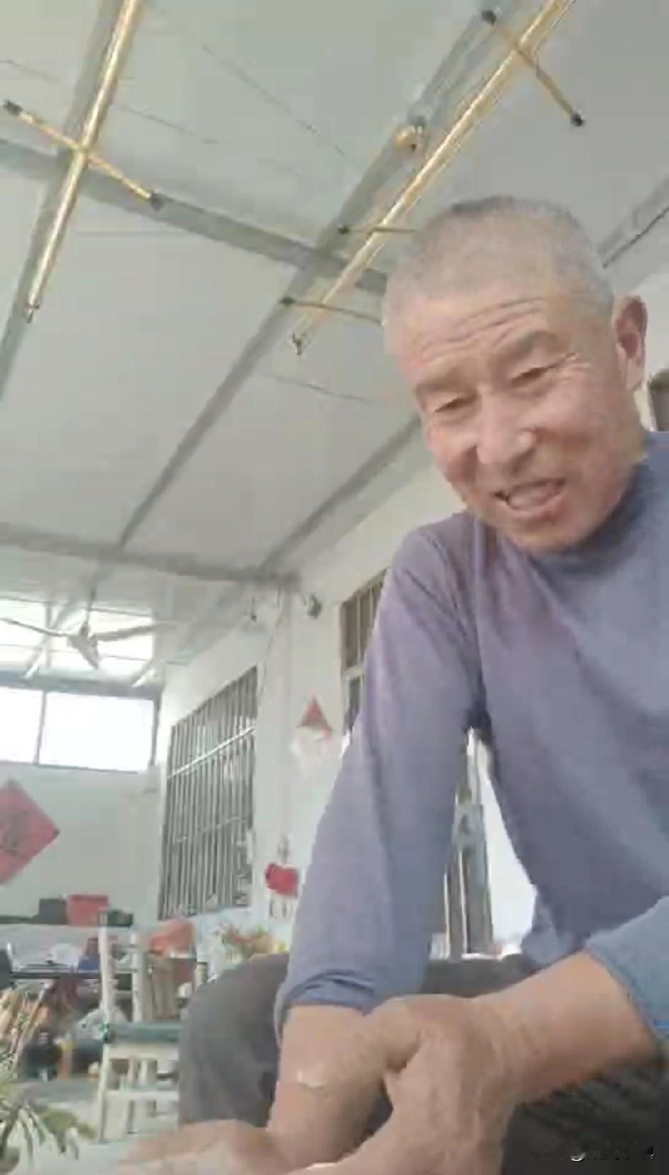 今天包饺子的视频里,一边揉面一边哼哼,很难听,但是他很开心。