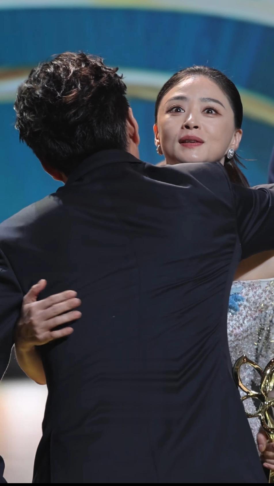 感觉靳东下了很大的决心才转身抱了蒋欣,靳东先是深吸了一口气,然后猛的转身直接抱住了蒋欣,蒋欣一脸懵,她没想到靳东会这么突然的回身抱住自己,拥抱的一瞬间,蒋欣的眼里有泪花,两人拥抱后互相祝贺,一个拿到百花最佳男主,一个拿到百花最佳女配,蒋欣对着靳东撇了撇嘴,差点哭了出来!蒋欣和靳东十几年前就合作过,估计这次顶峰相见,他们也是感慨良多!靳东