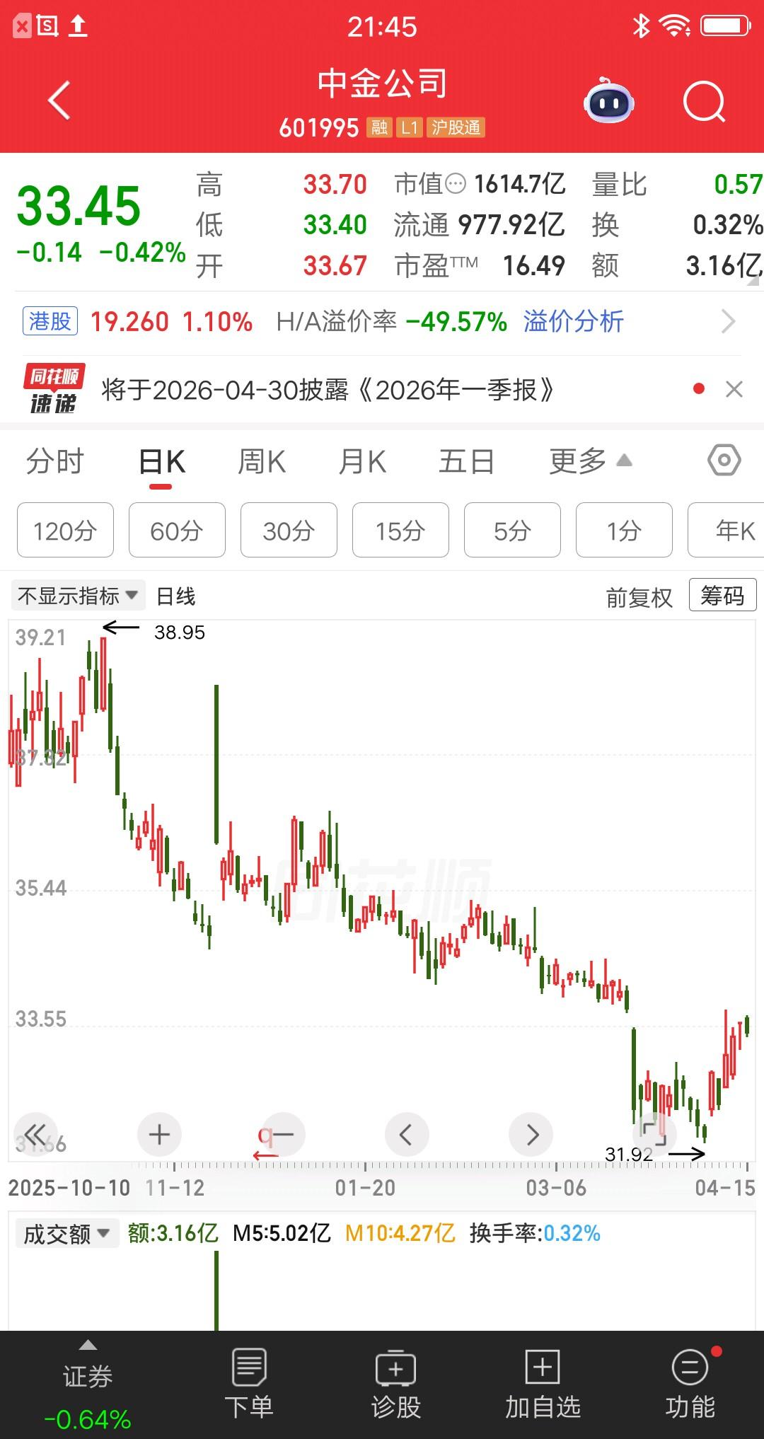 盘后他看快讯,发现中金公司利润38亿增长90%,他被这些数字震撼到了,这么炸裂的业绩,再加上股价调整很久了,主力能不拉一波吗?