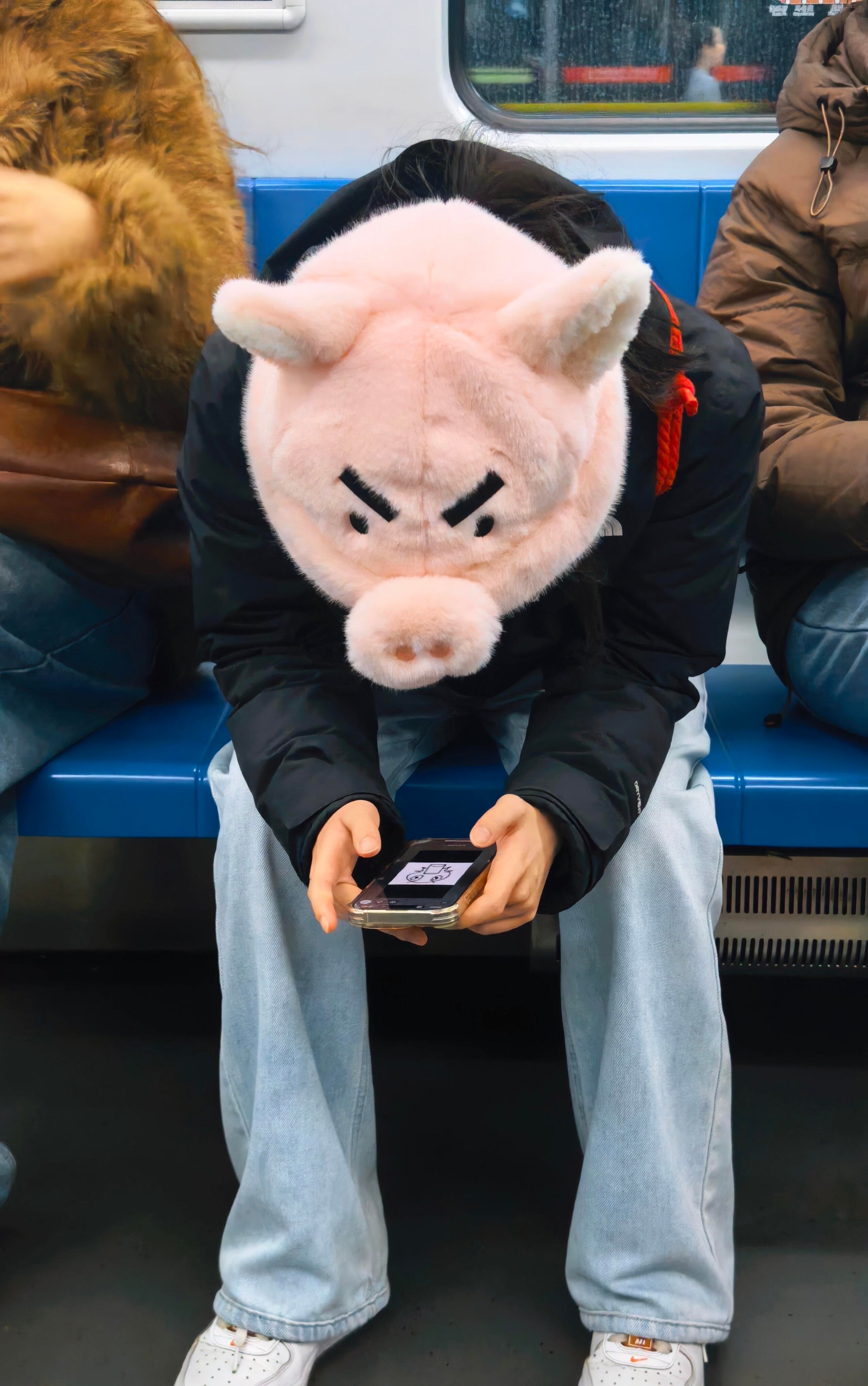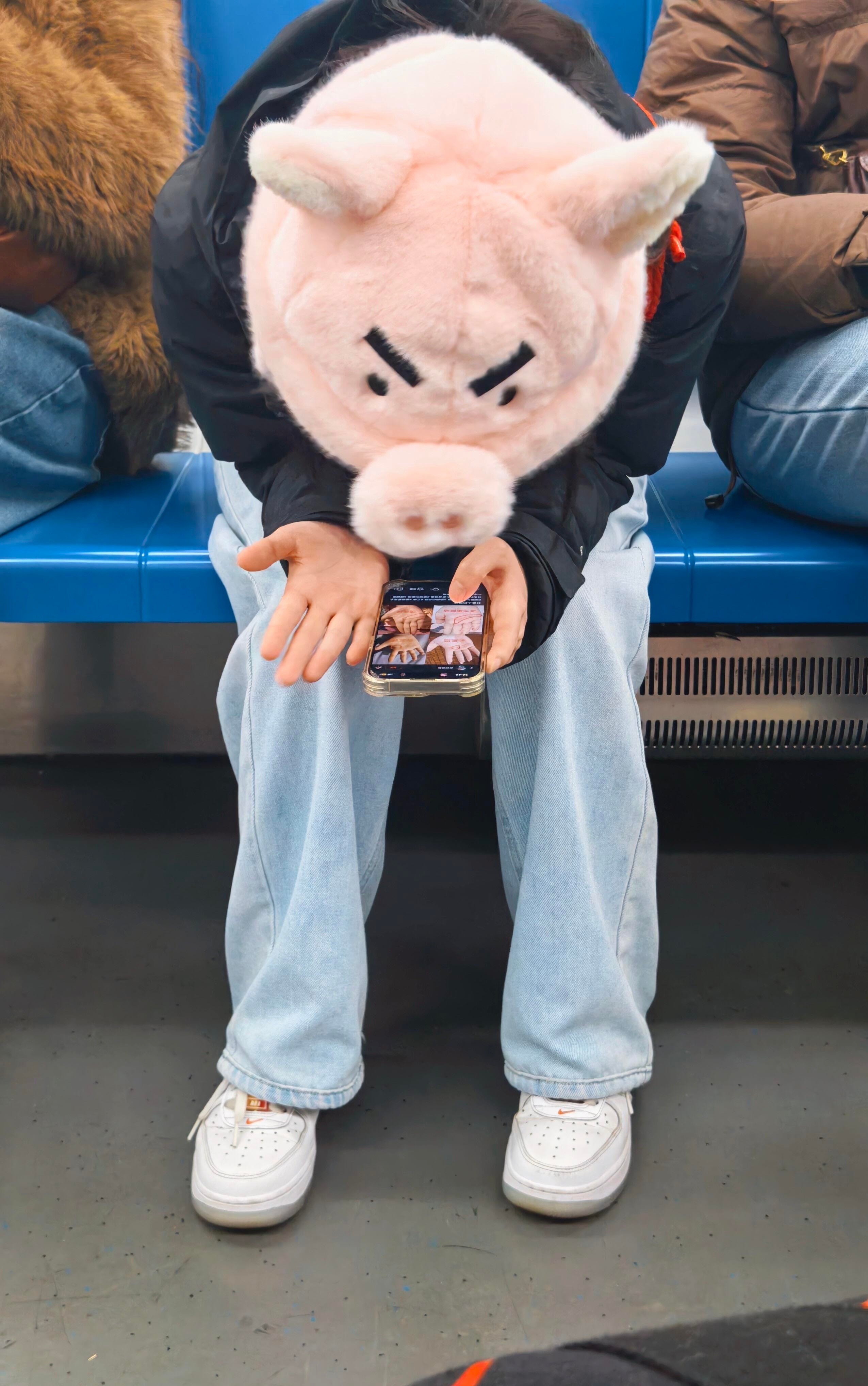 在地铁碰到可爱猪头☺️