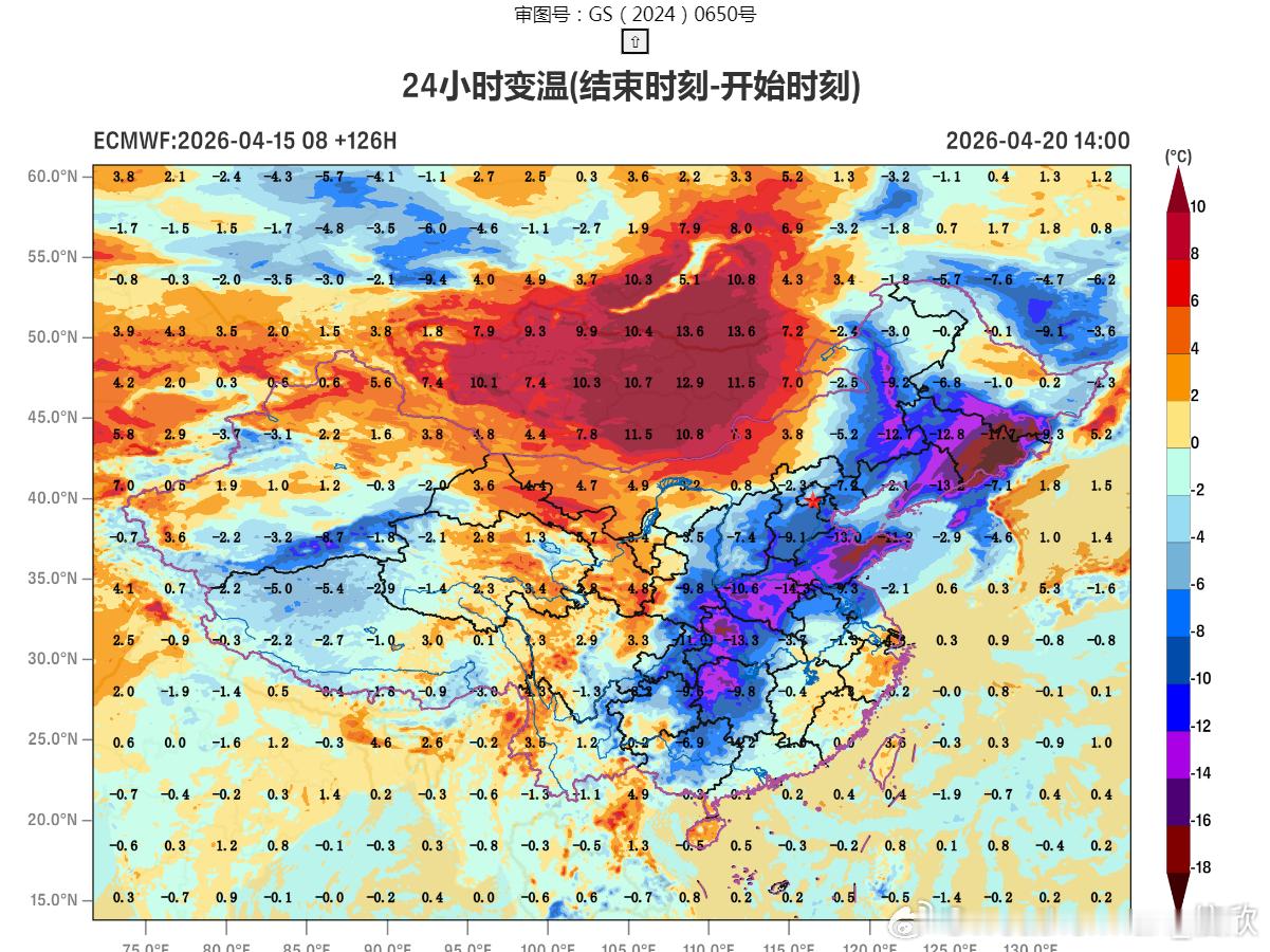 而且最高气温比平均气温和最低气温降幅更大。19日下午对比18日下午,内蒙古中部一带,比如二连浩特、苏尼特左旗等地,24时降温,甚至可能超20℃。因此厚衣服别着急收。