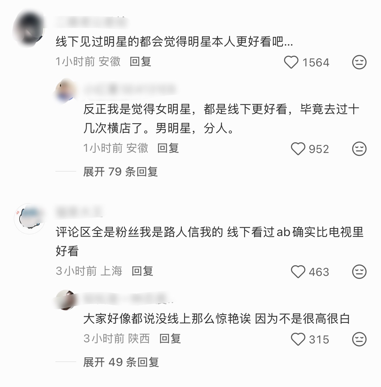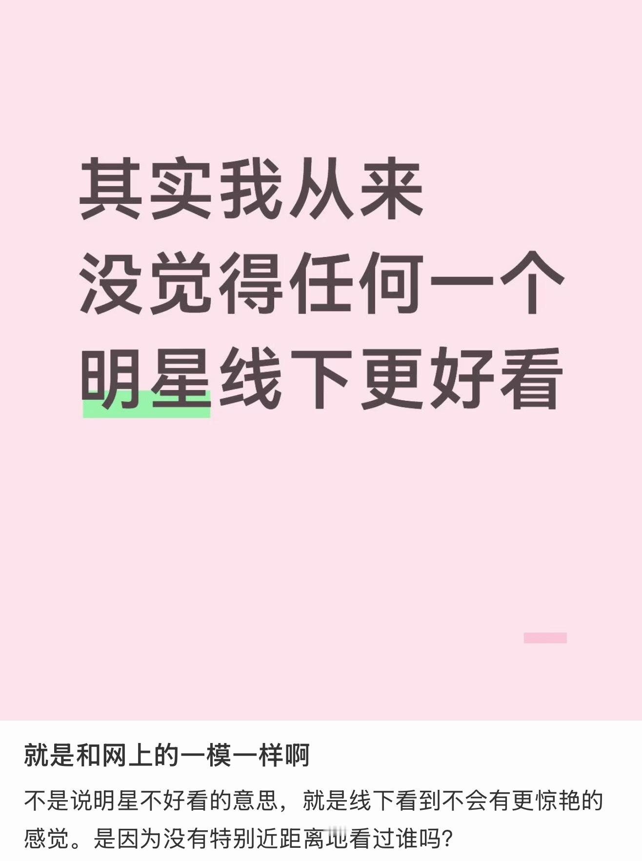 明星应该都是线下更惊艳吧,男明星说不准,因为身高皮肤容易露馅…不过我线下见过的明