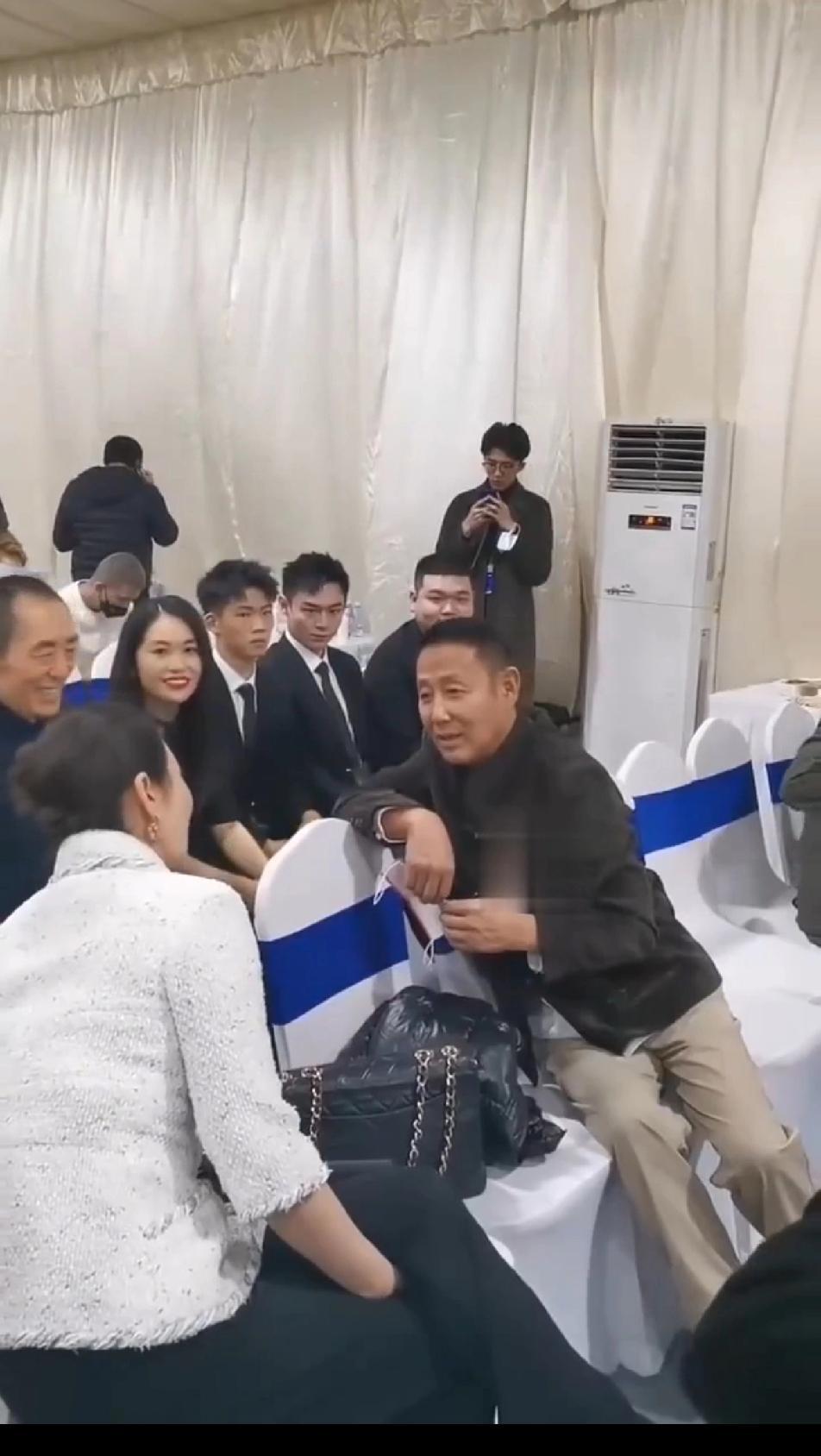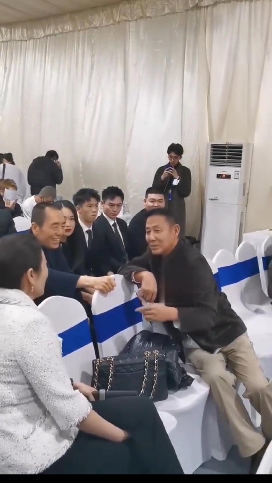娱乐圈能让陈道明这么费劲的转着身子聊天的也只有张艺谋了,只见陈叔一手撑着椅子,扭转着身子和张艺谋聊得不亦乐乎,感觉陈道明到了张艺谋跟前完全没了墨镜一戴,谁也不爱的大佬气质,在张导面前的陈道明看着很谦卑也很平和,整个人的气势都弱了好多!陈道明