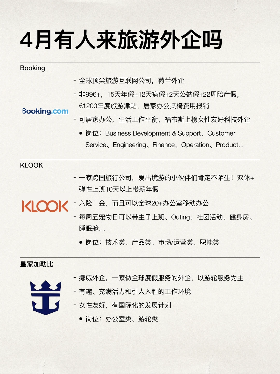 喜欢旅游的一定要趁金三银四去投做旅行业务的外企,每家都很香!比如爱彼迎、Booking、Agoda这些大家平时可能都用过的,其实都有很多不错的工作机会