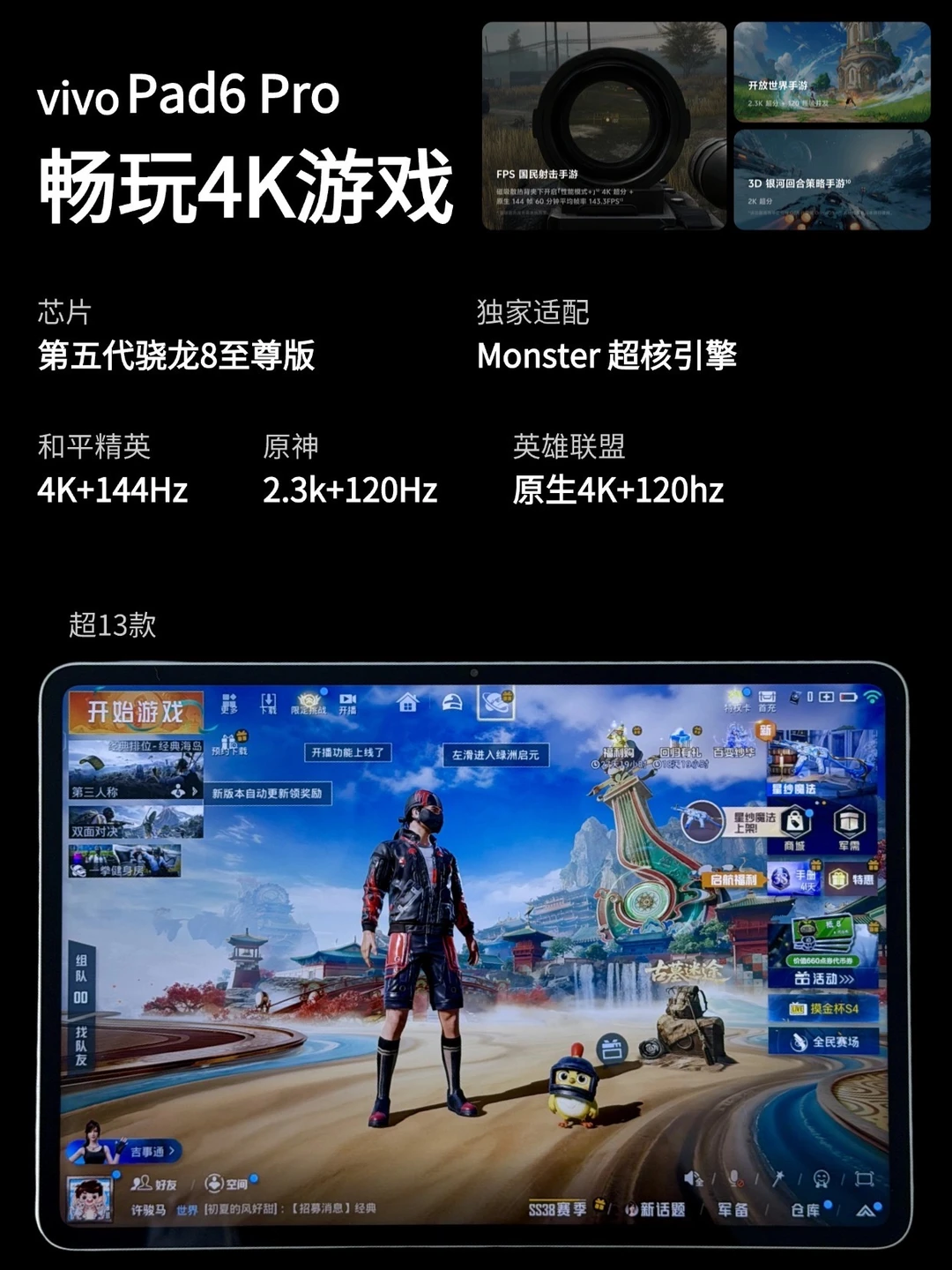 vivo Pad6 Pro 支持运行13款原生4K分辨率游戏。