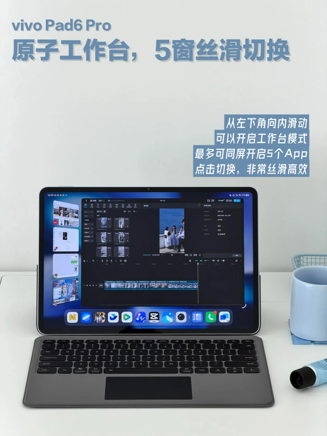 其次,备受好评的原子工作台,5窗工作台也来到了Pad6 Pro 上,可以同时前台运行5个 App。效率拉满!