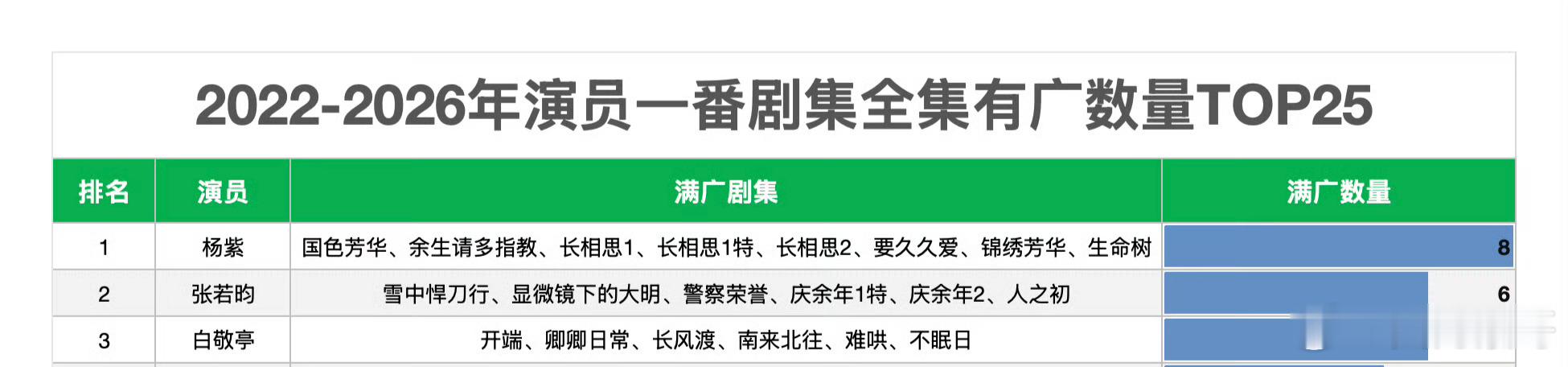 杨紫2022年以来的剧集满广数量竟然这么多,8部一番全满,直接断层所有演员的第一