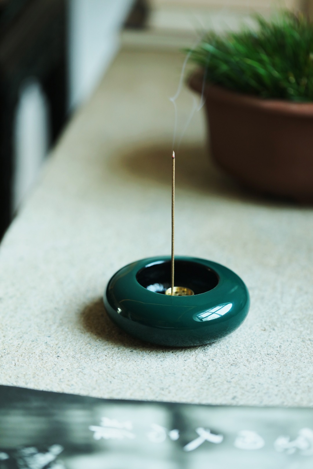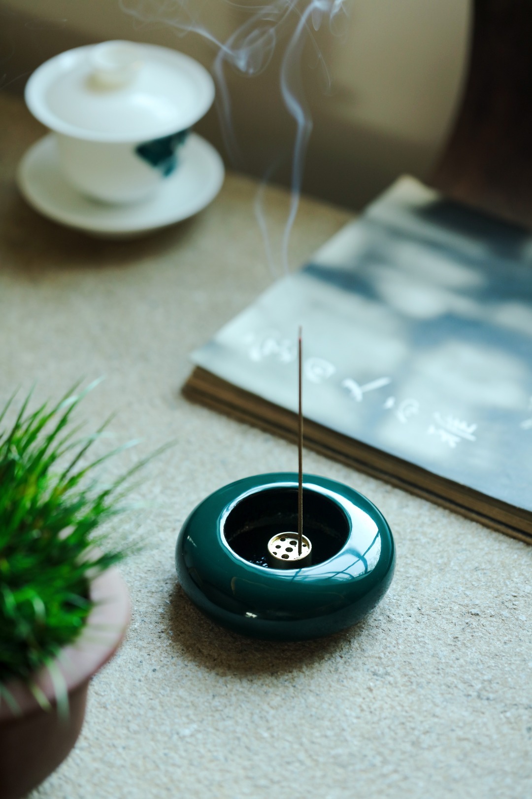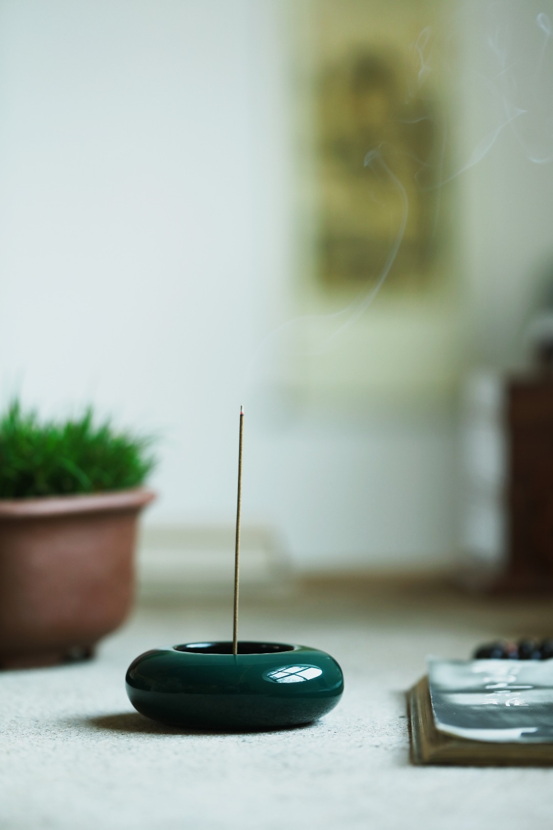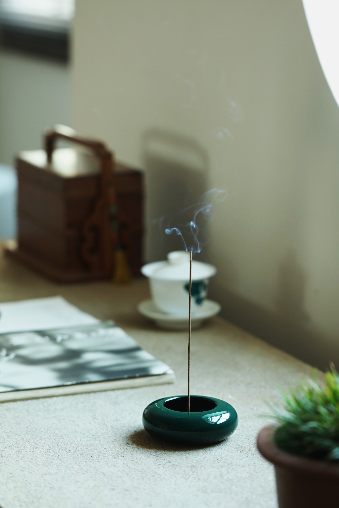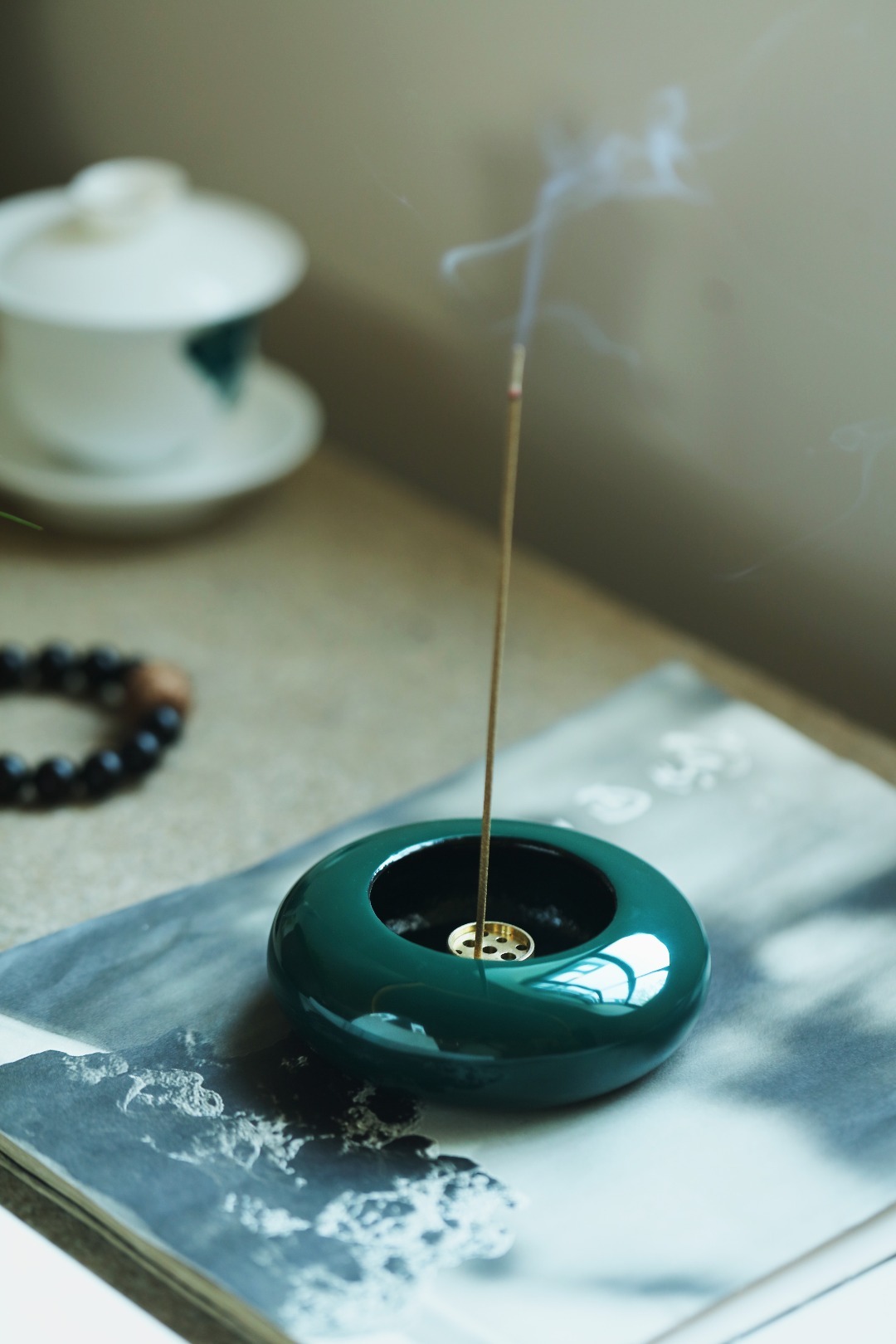 大漆丨墨绿·香炉非遗大漆工艺,裱布刮灰,层层髹漆数十道,做工精致细腻,案几燃香,