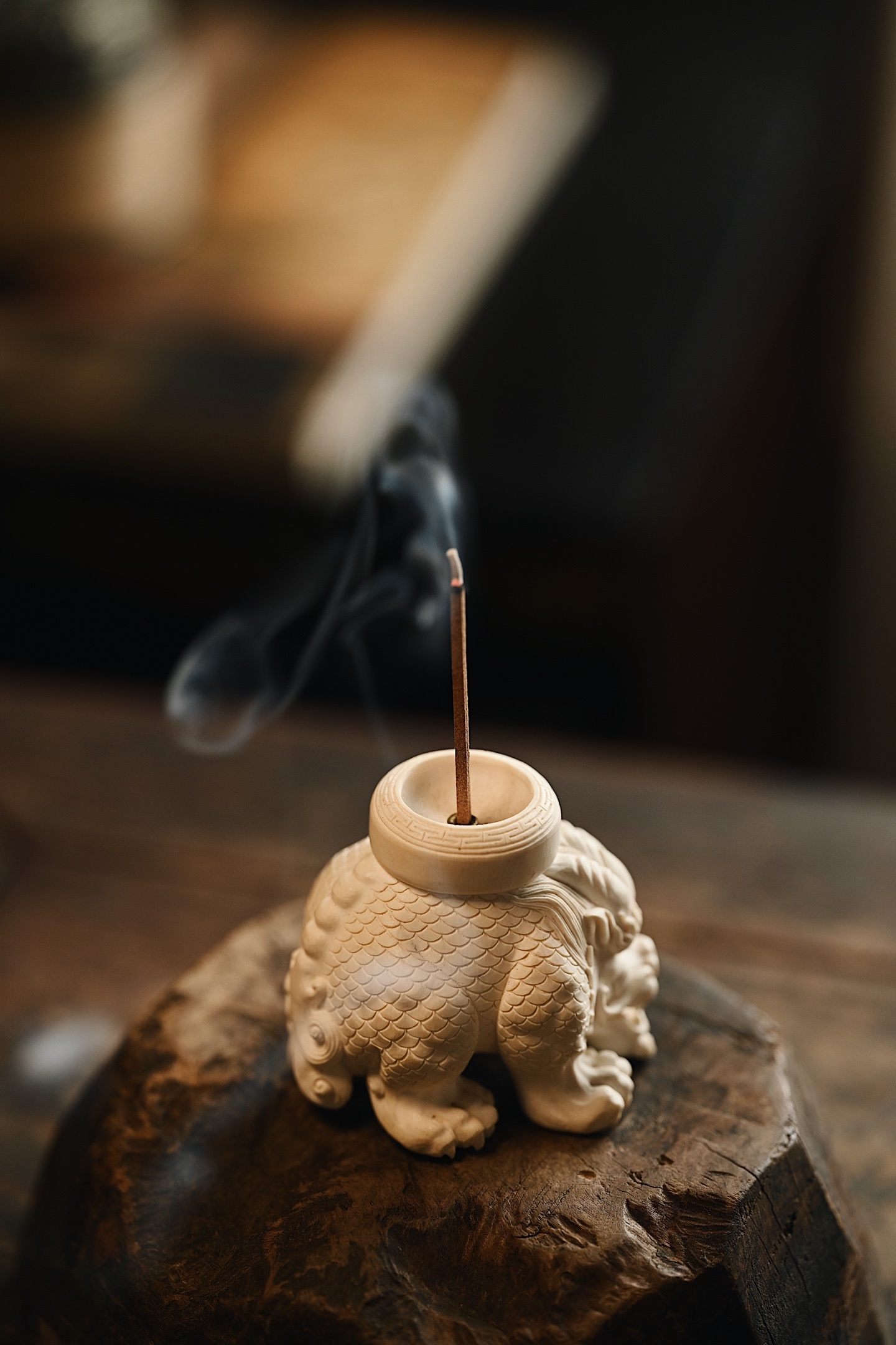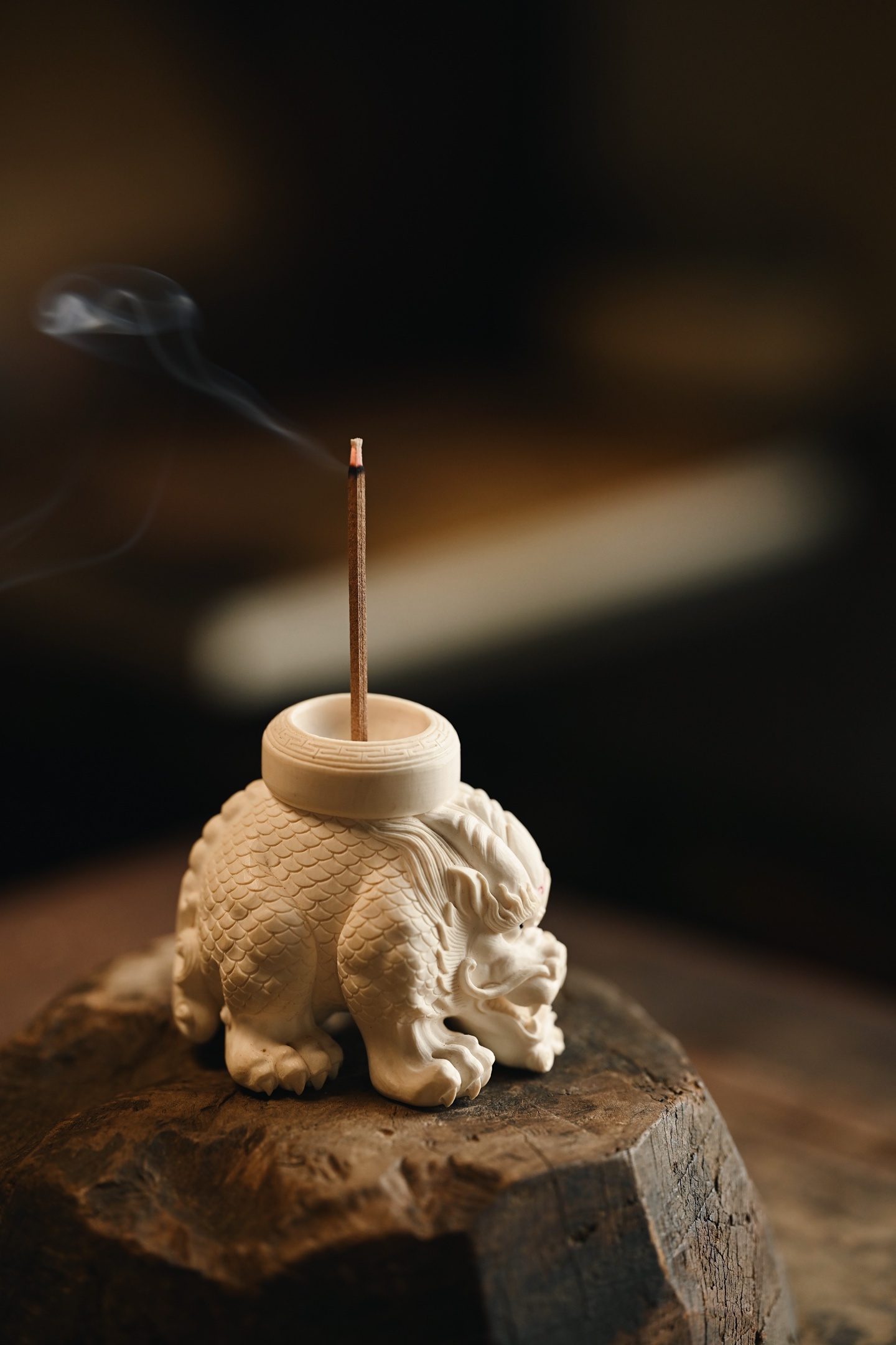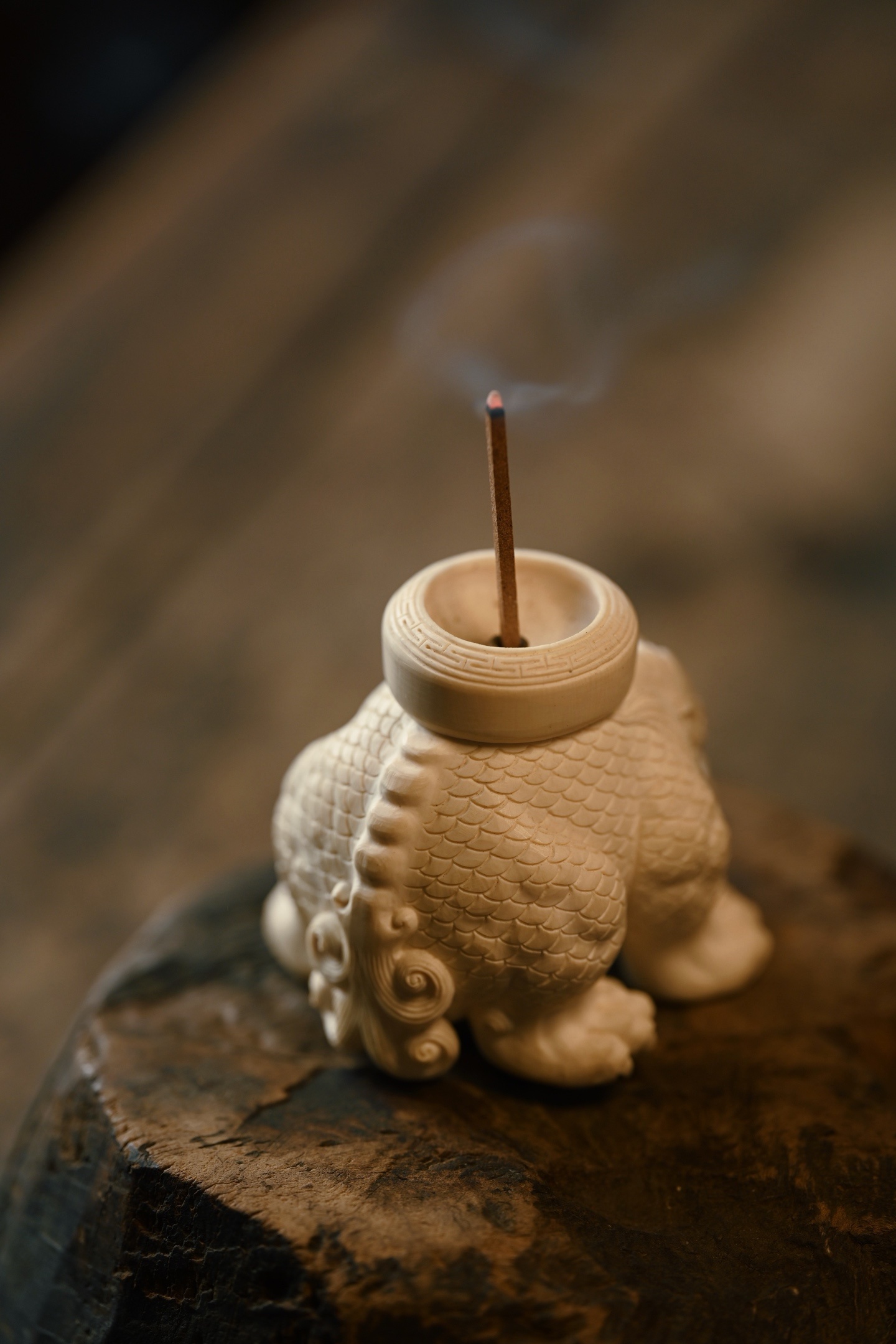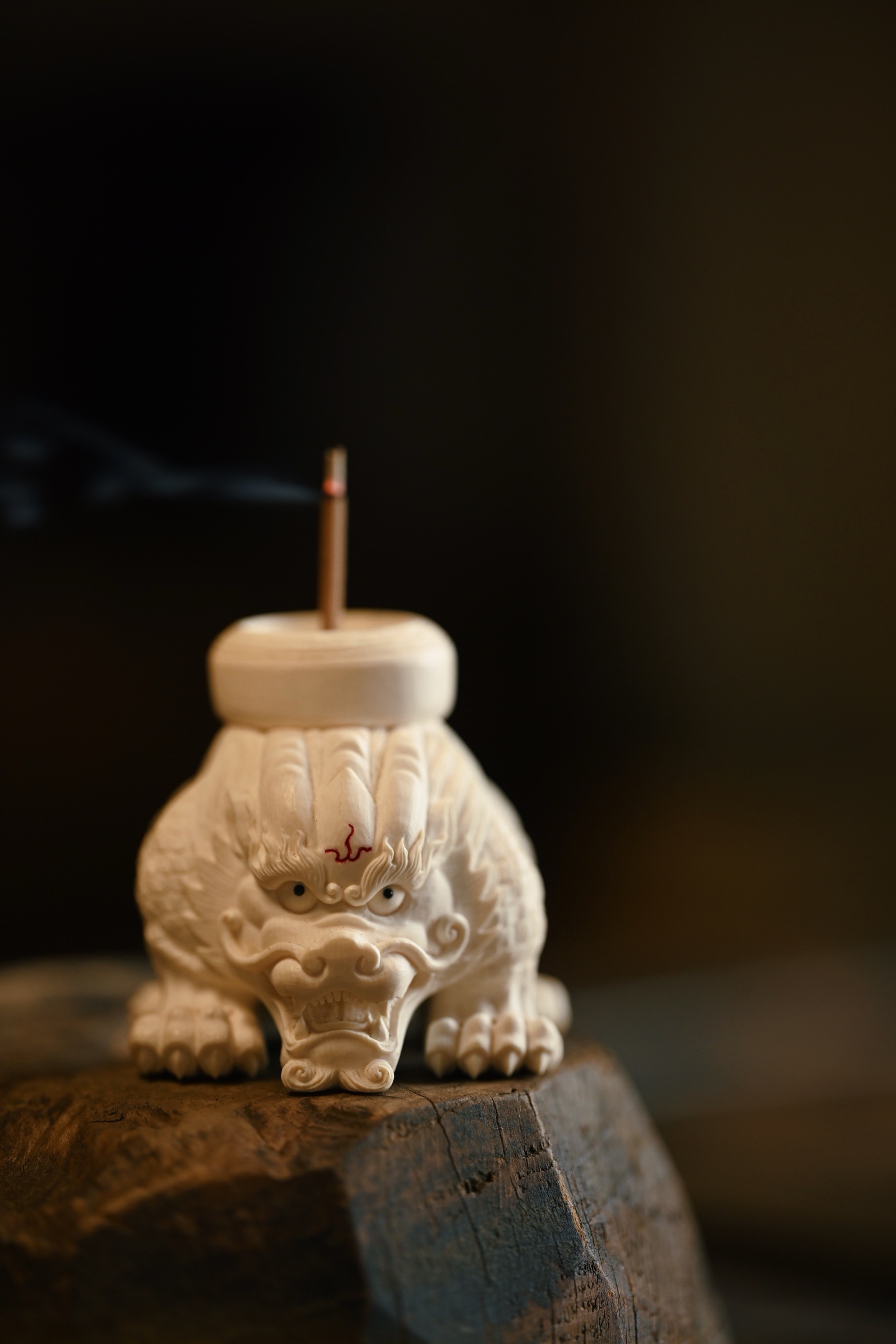 整料一体雕刻,瑞兽威仪敦实,鳞甲层次清晰,神态霸气灵动,爪足筋骨饱满,细节雕琢入微。置文房茶室焚香,瑞气满盈。