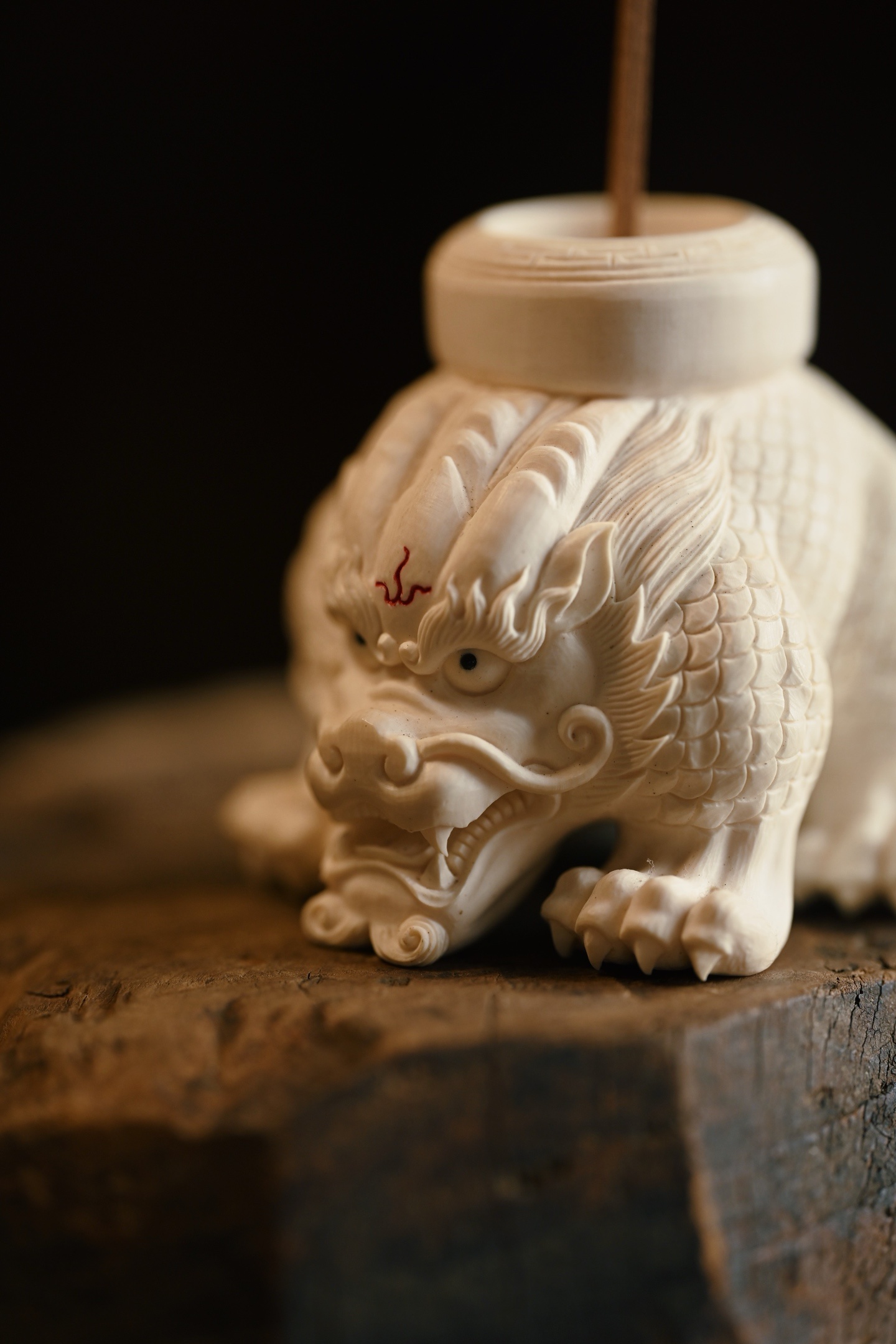 猛犸 | 瑞兽 香插整料一体雕刻,瑞兽威仪敦实,鳞甲层次清晰,神态霸气灵动,爪足