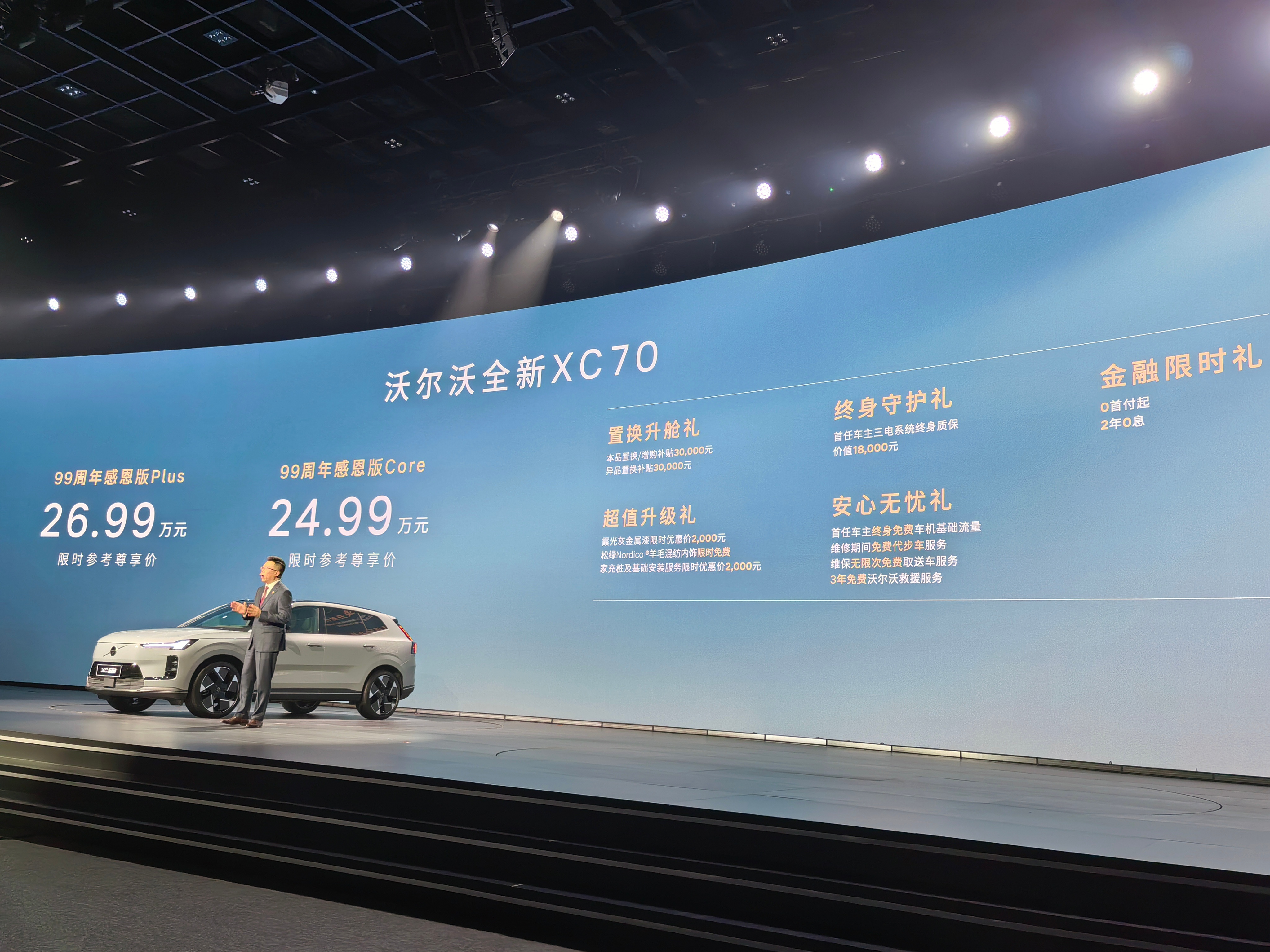 沃尔沃纯电双旗舰开启预售 沃尔沃99周年发布会,三剑齐发,两款纯电旗舰ES90和EX90开启预售,ES90预售价42.99万起,EX90预售价53.99万起,还有6重限时权益。全新XC70的99周年感恩版,售价24.99万起,5重限时权益,配置上图了。