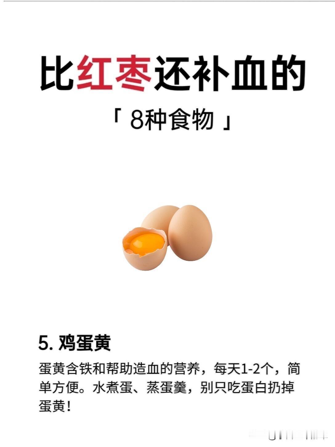 • 注意事项:不要只吃蛋白丢弃蛋黄,蛋黄才是铁的主要来源。