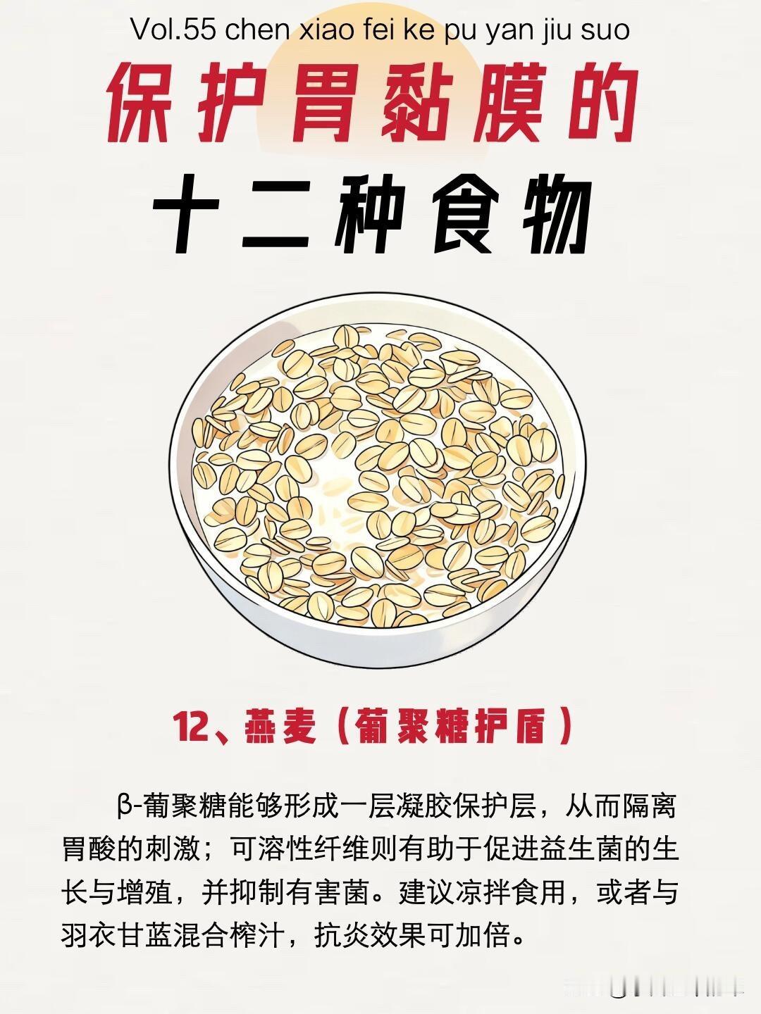别再瞎养胃了!12种食物才是胃黏膜的“保护神” 很多人胃不舒服就靠喝粥养胃,却