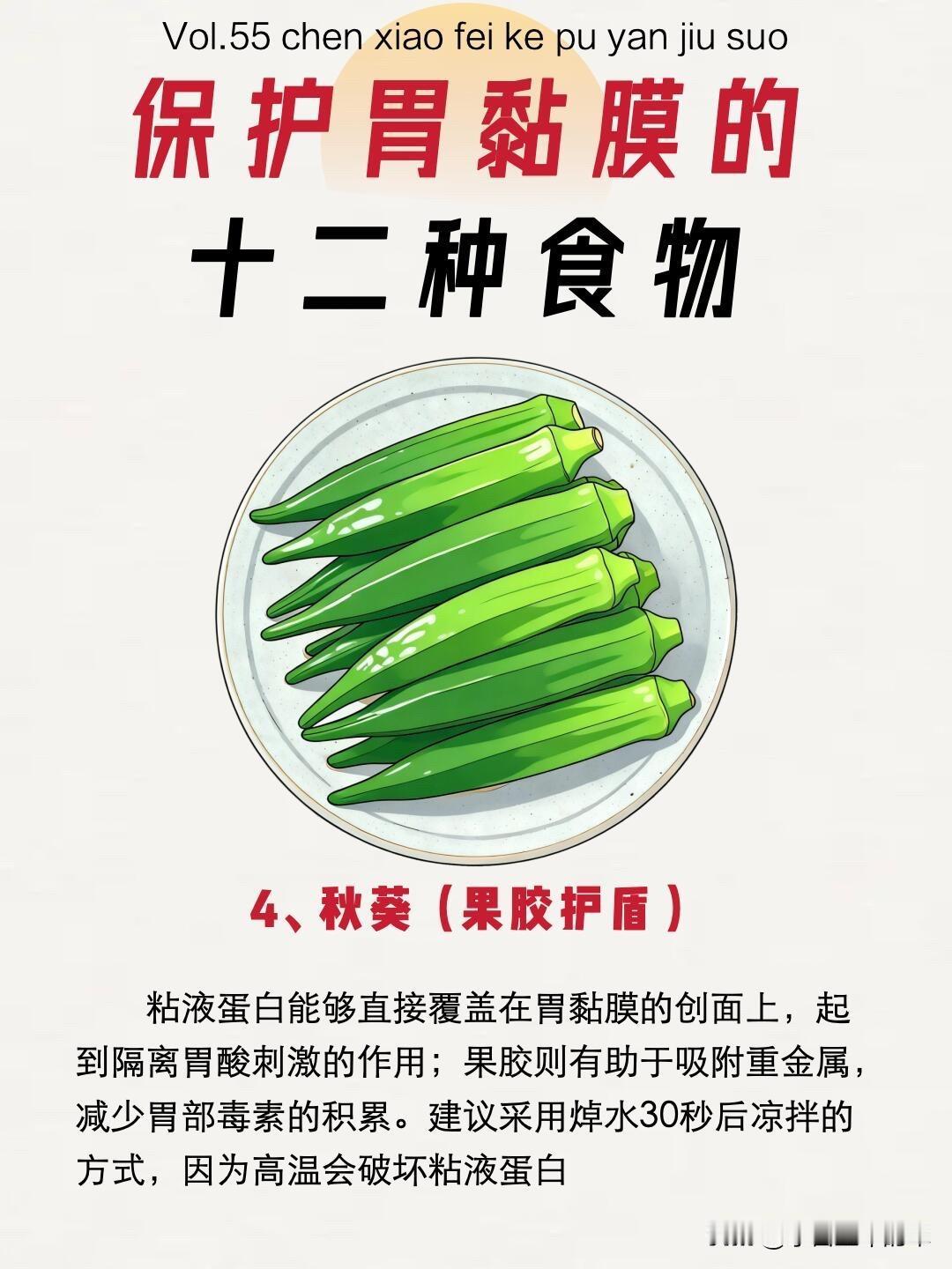 很多人胃不舒服就靠喝粥养胃,却不知道真正能给胃穿上“铠甲”的,是这些日常食材。银耳多糖能在胃黏膜上形成水化保护膜,吸附多余胃酸;秋葵的粘液蛋白直接覆盖胃壁创面,隔绝胃酸刺激;猴头菇更是养胃王者,多糖成分能有效抑制幽门螺旋杆菌。